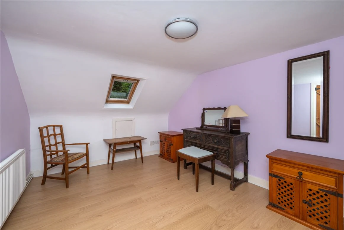 Completing this level is a two-piece guest bathroom suite with laminate wood flooring and Velux window.