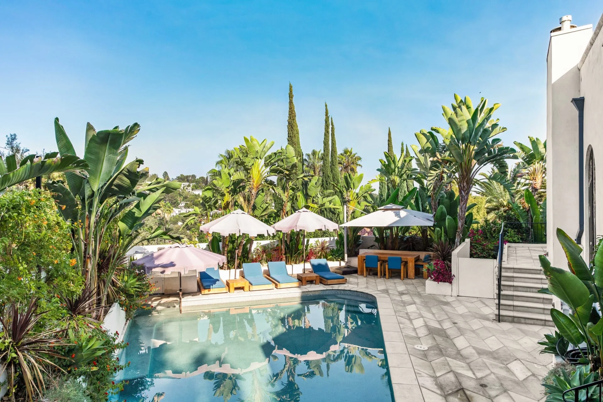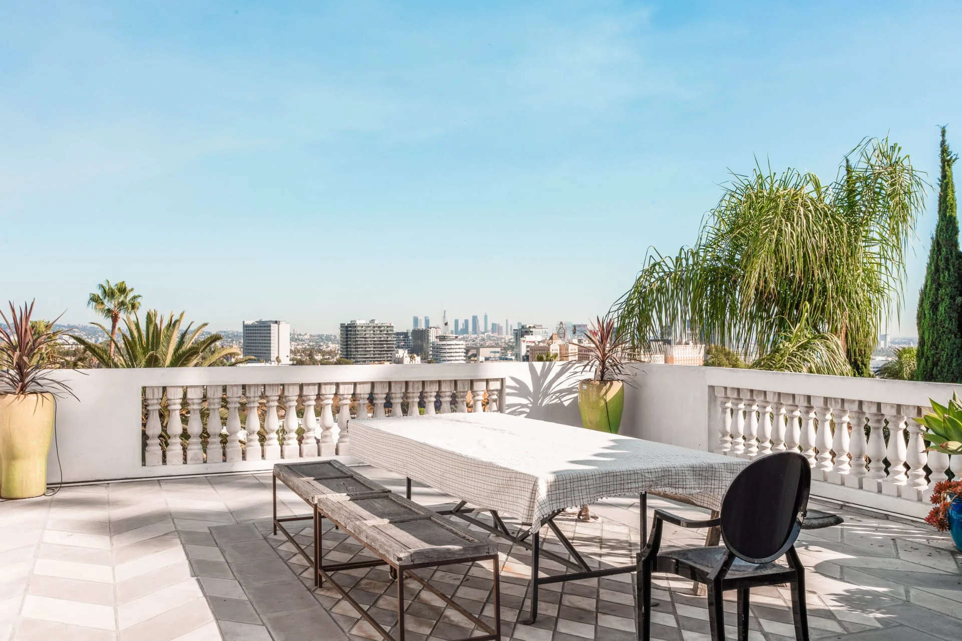 As well as a large Mediterranean-style garden, a pool and guest apartment, the house also has an incredible roof terrace, with sprawling views of downtown Hollywood and the hills. Perfect for sundowners.