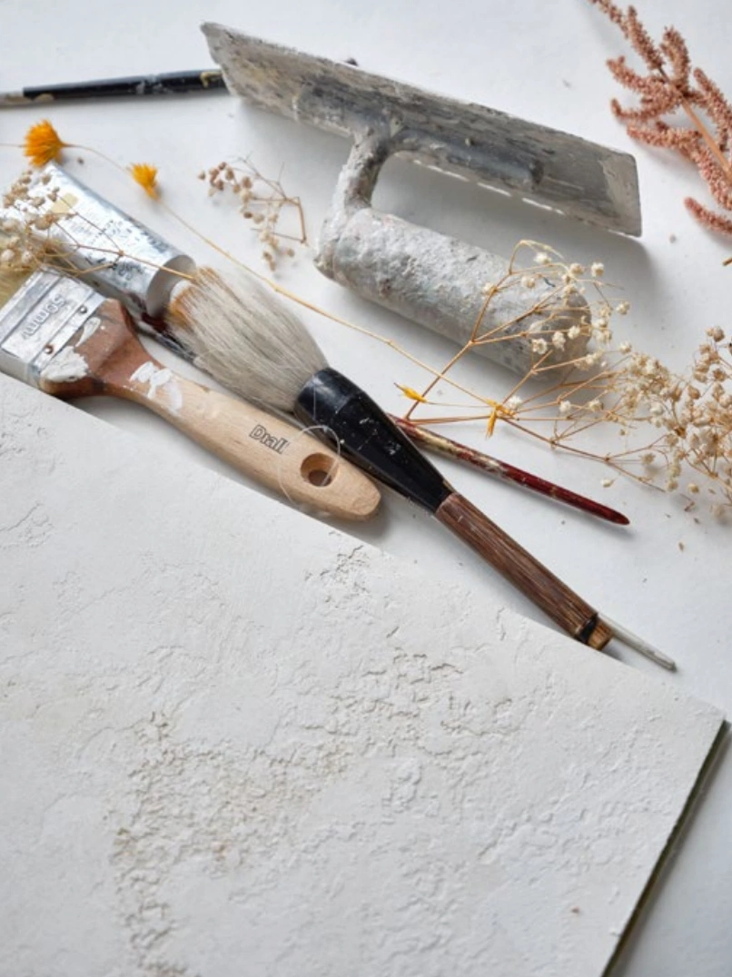The process can be long and tiresome, but it makes a strong, honest and lightweight texture that’s also an original and individual artwork. Plaster doesn’t like perfection; its beauty is in authenticity and the only way to achieve it is by giving it the attention it needs.