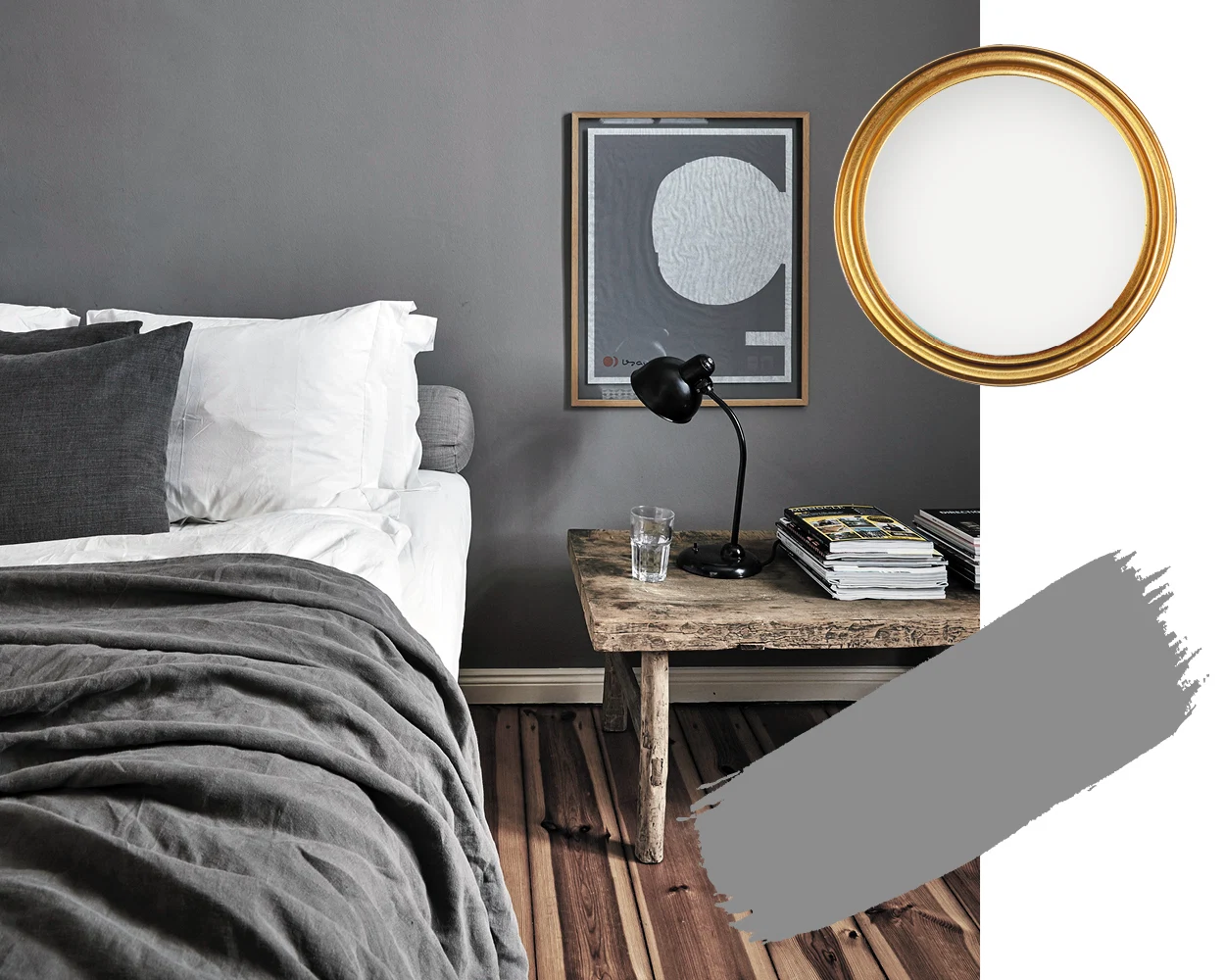 A tonal colour scheme uses one colour in varying tones. This scheme can be as simple as selecting two or three shades from a single colour swatch. This bedroom below plays with a monochrome palette, varying shades of charcoal grey to off-white.