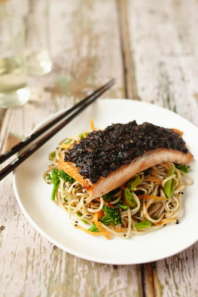 Served with soba noodles, this Japanese-inspired crusted salmon dish from Dr Joanna McMillan is healthy, nutritious and super-tasty.
