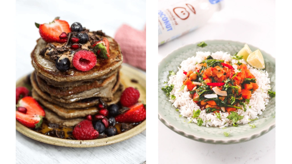 “An easy, everyday recipe is my vegan protein oat pancakes. I make them with oats, banana, and dairy-free milk. I usually make them for breakfast at least three times a week. And they’re easy to store in the fridge, just add a few spoonfuls of almond butter and some berries and it’s so comforting.