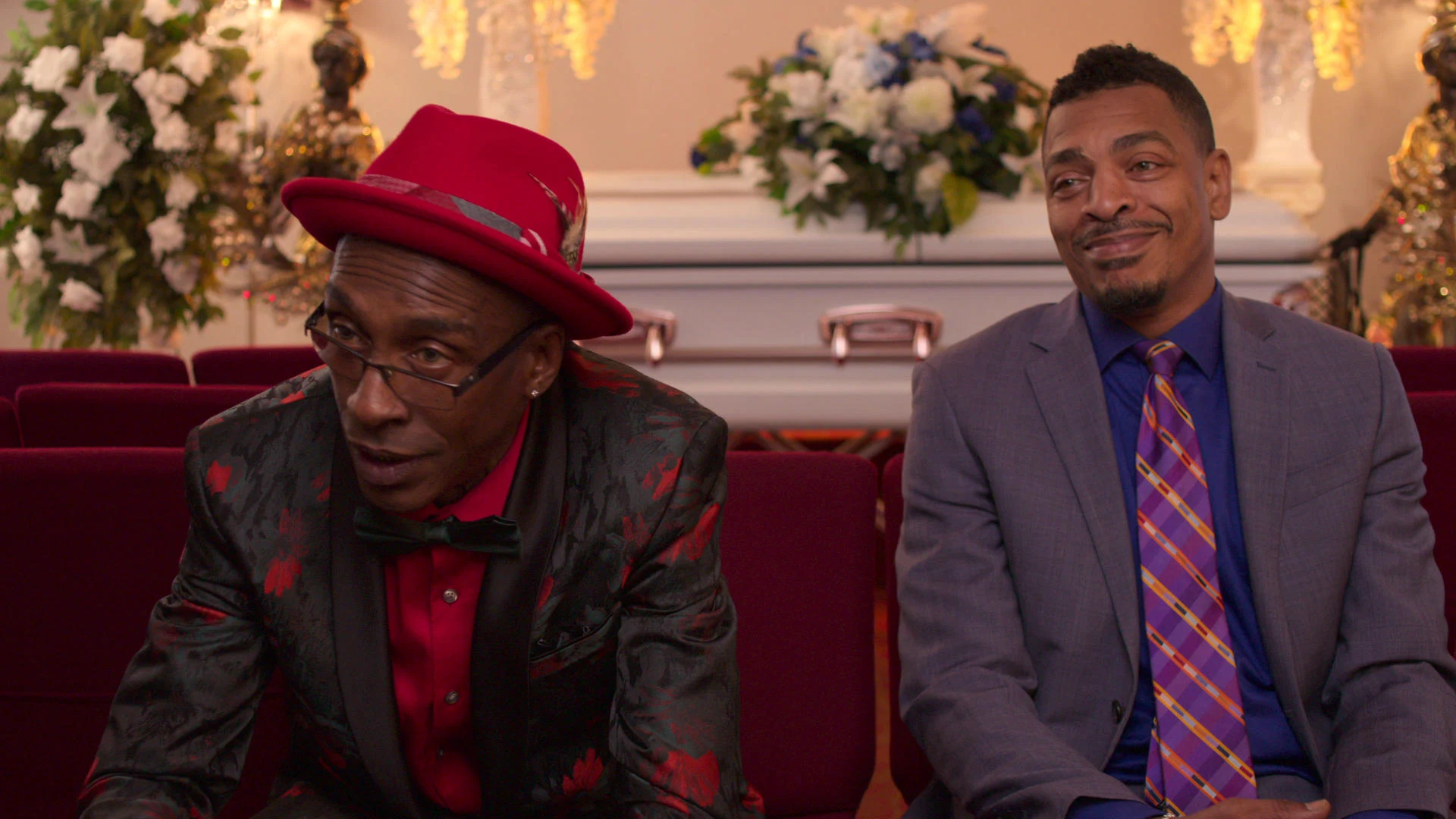 (L-R) Uncle Kevin and Ryan Bernard in episode 1 “Meet the Bernards” of Buried by the Bernards S1. c. Courtesy of Netflix © 2021