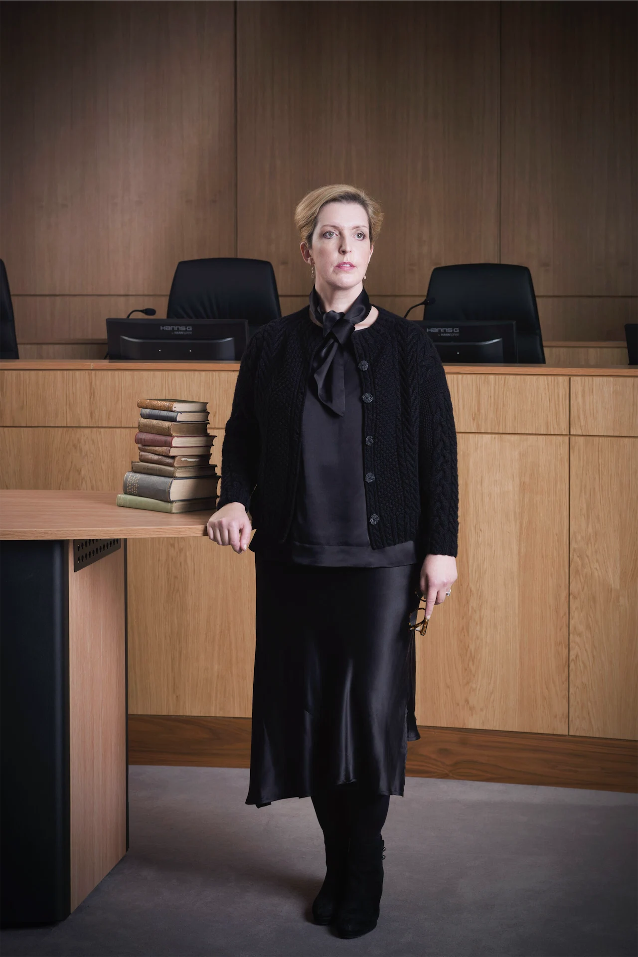 On the day of shooting, we were told we could only shoot in one room, as exams had started; that room was the newly-built Courtroom; it all felt so apt! The books in the image were my grandfather’s – he was the assistant general secretary in the Department of Education.”