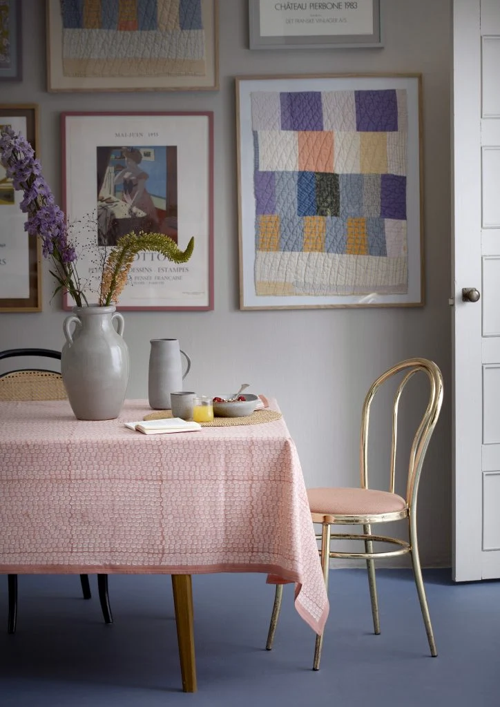 Either one carefully-chosen piece or a gallery wall next to your dining table will set the tone for the whole space, whether you want that to be clean and minimalist, or more eclectic.