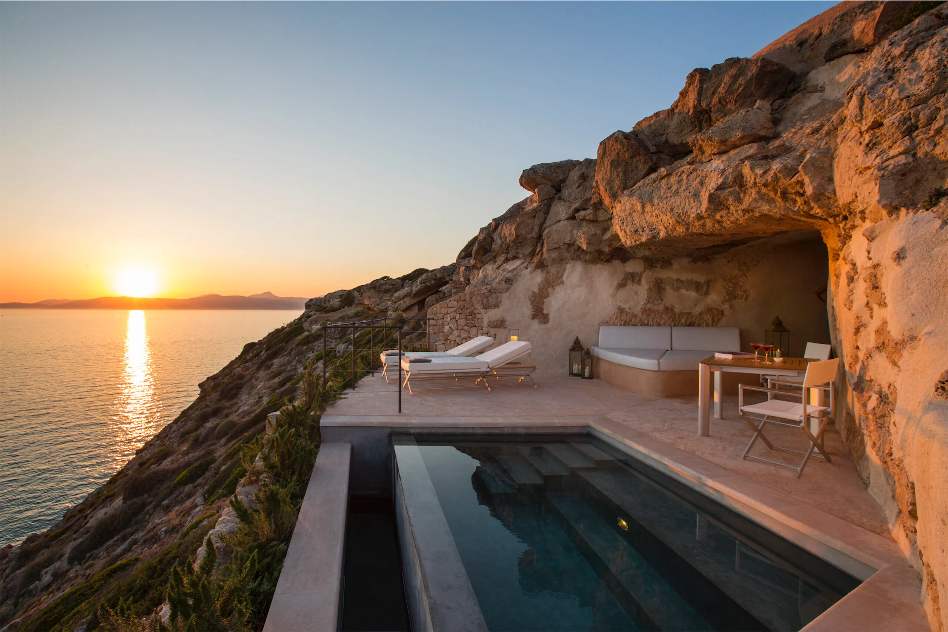 THE NEUENDORF HOUSE Despite being completed in 1991, The Neuendorf House, designed by John Pawson, has an air of old-style grandeur about it, thanks to its dramatic proportions that surprise and delight. Set in an almond grove, with panoramic views of the mountains and sea, this modernist statement is still distinctly Balearic with the surrounding soil lending its pink pigments to this concrete creation. Book ahead to stay.