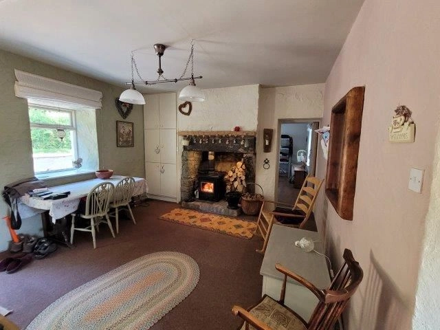 In good condition throughout, the cottage was renovated by its current owners within the last 15 years though slight upgrades will still be needed. Many of the building’s original features remain including a cosy stone fireplace. Double-glazed hardwood windows, a solid fuel stove with back boiler and French doors off the sitting room take advantage of the wonderful panoramic views of the valley below.
