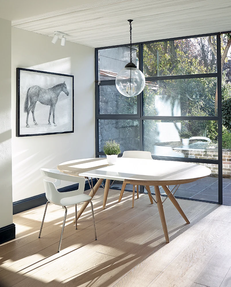 You’ll recognise Declan O’Donnell as former judge on RTÉ’s Home of the Year show. The award-winning architect has more than earned his place on the programme, as evidenced by the cutting-edge work he’s doing as part of his practice, ODKM. We just adore the additional glass box, housing a mini table and chairs, at the side of this South Dublin extension. So, what was the brief? “This is a semi-detached, Victorian house dating from the 1840s,” begins Declan. “The owners wanted a single-storey extension and refurb to achieve a larger, brighter kitchen with informal and formal dining.” The site posed a bit of a challenge for him to work around. “With a narrow plot built up on both sides, pulling in light from above was key.”