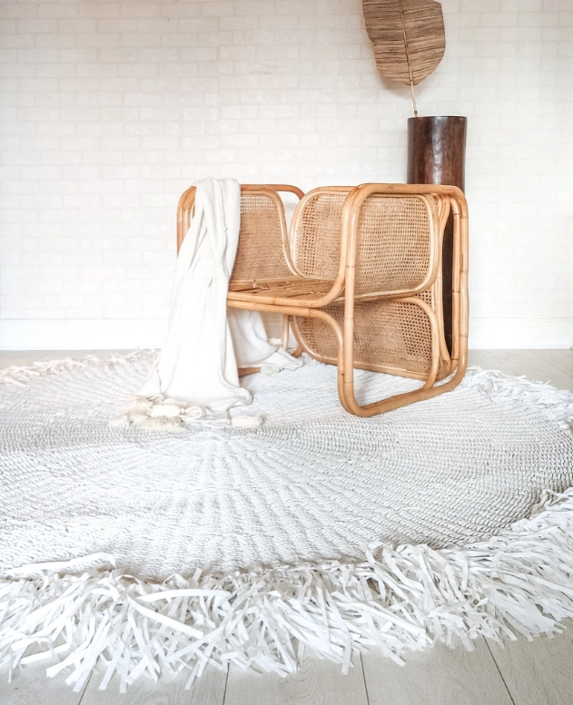 Perfect for adding some natural texture into a space, this rug is handmade in Bali. The light shade will work seamlessly with almost any décor, yet the generous fringe on the edge still makes a statement.