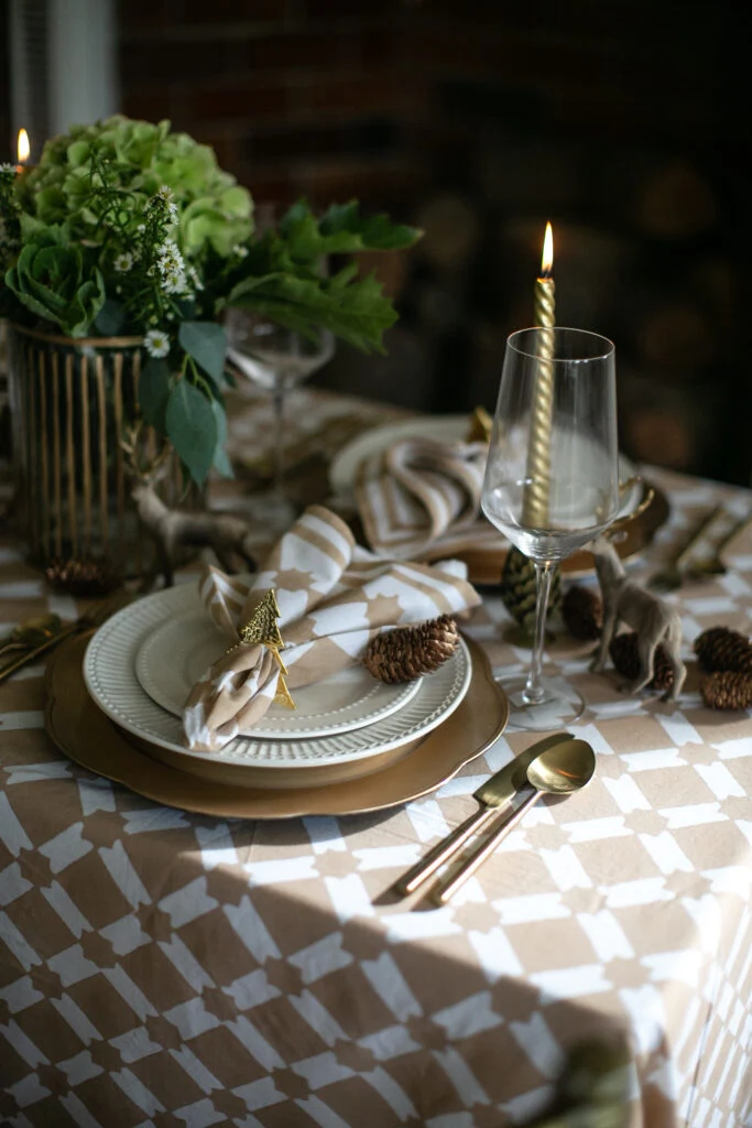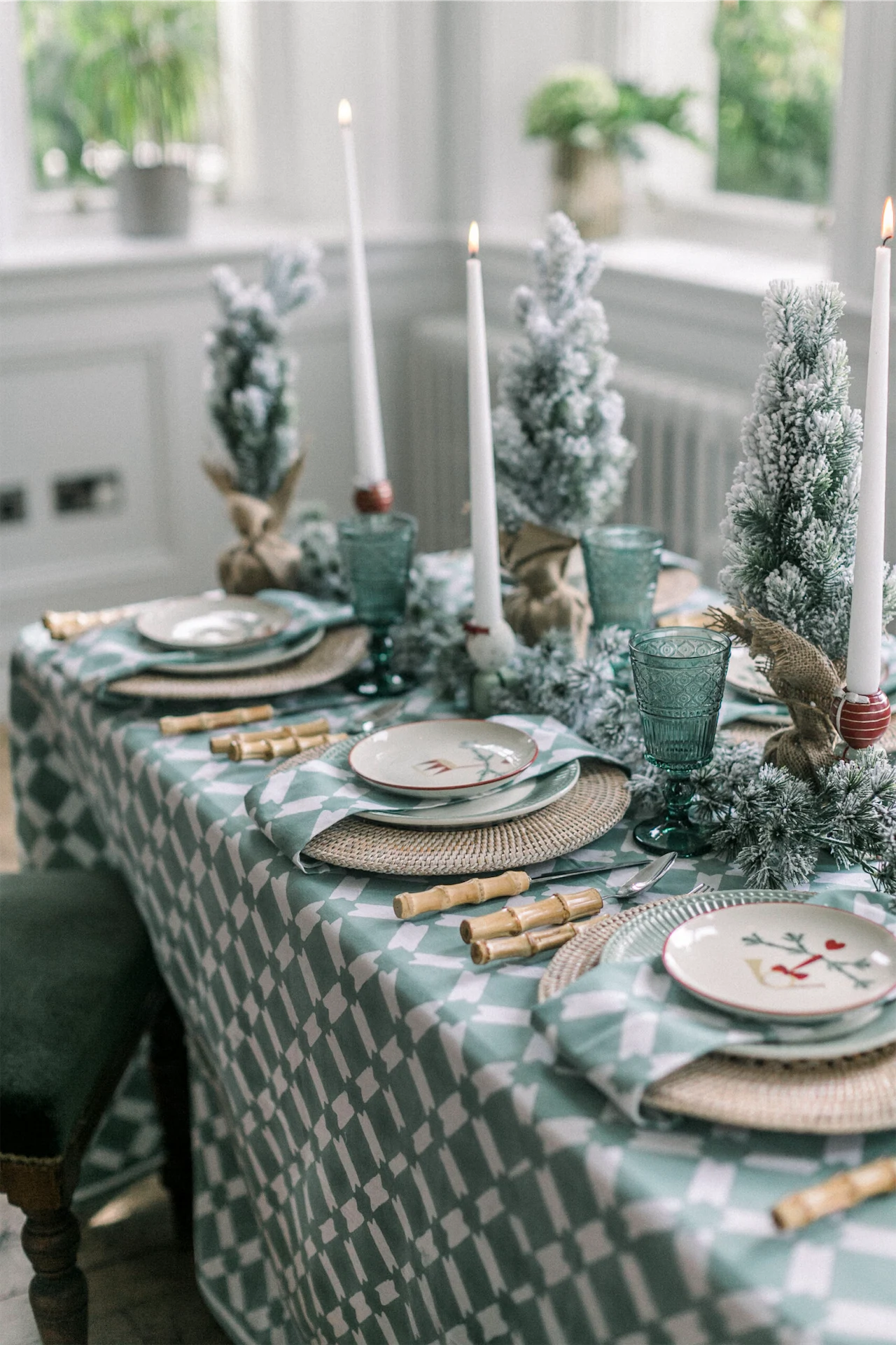 I think a Christmas table is always extra special with a tablecloth. Tablecloths aren’t always necessary throughout the year, but at Christmas if you use nothing else, a tablecloth is always extra special for everyone to see when sitting down.