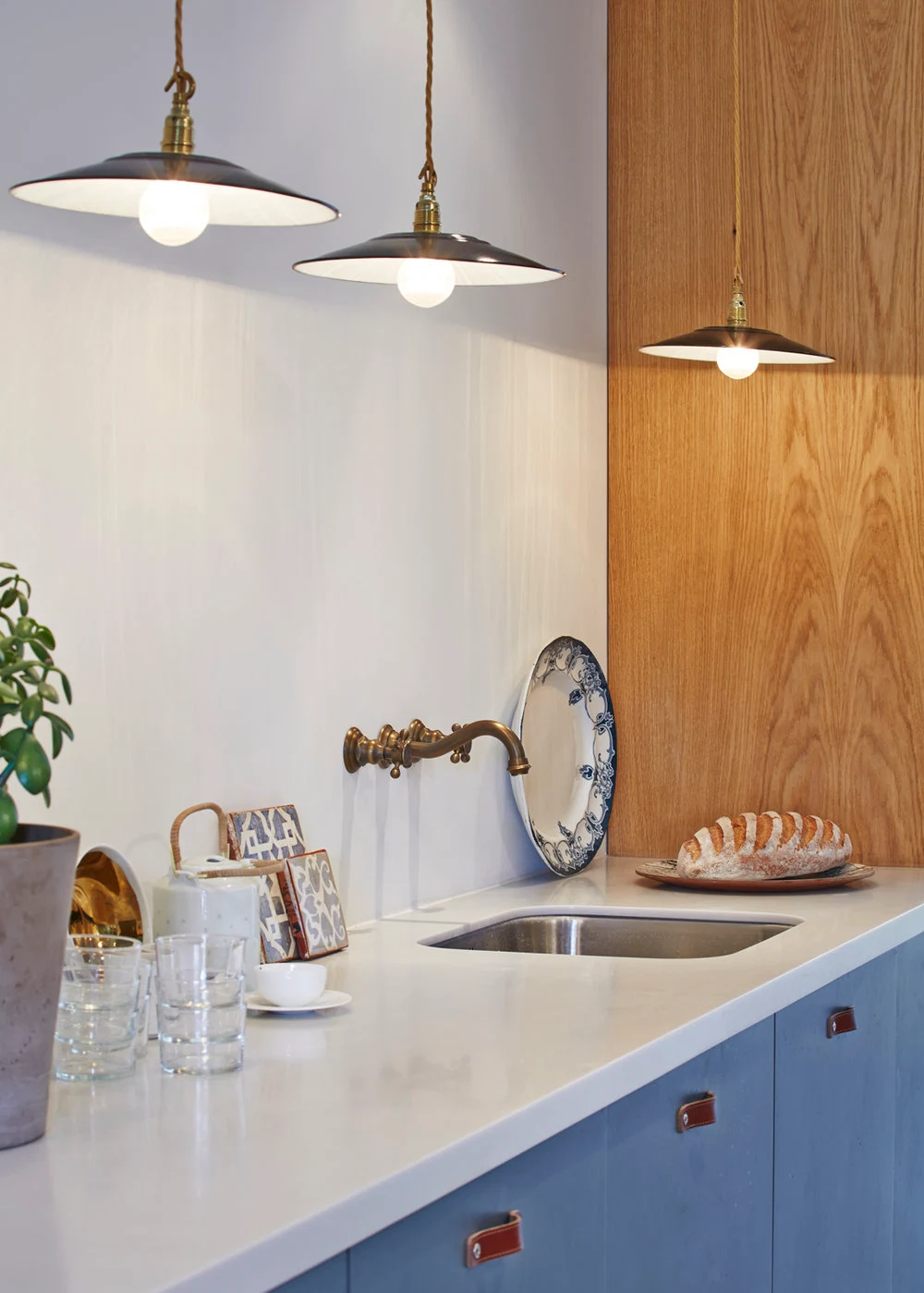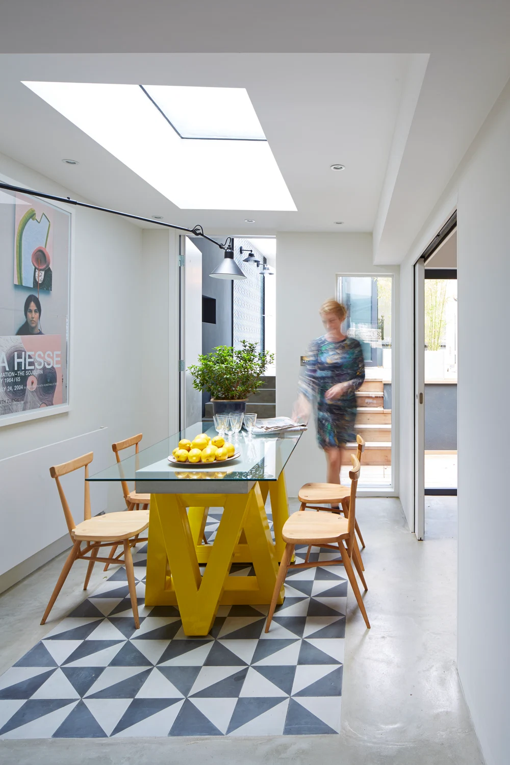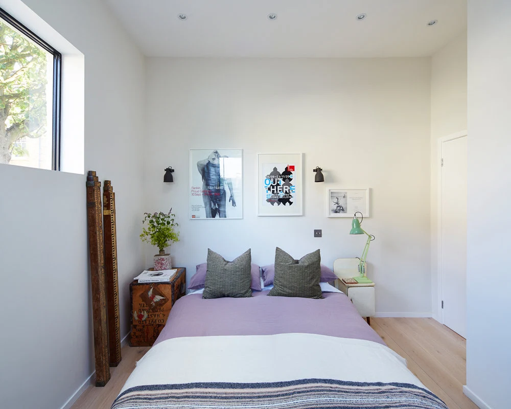 The Blue Tile House, originally a one-bedroom plus garage and an outhouse hovel, is now a glamorous, light-filled and imaginative three-bedroom space that their Zürich-based clients use when in London.
