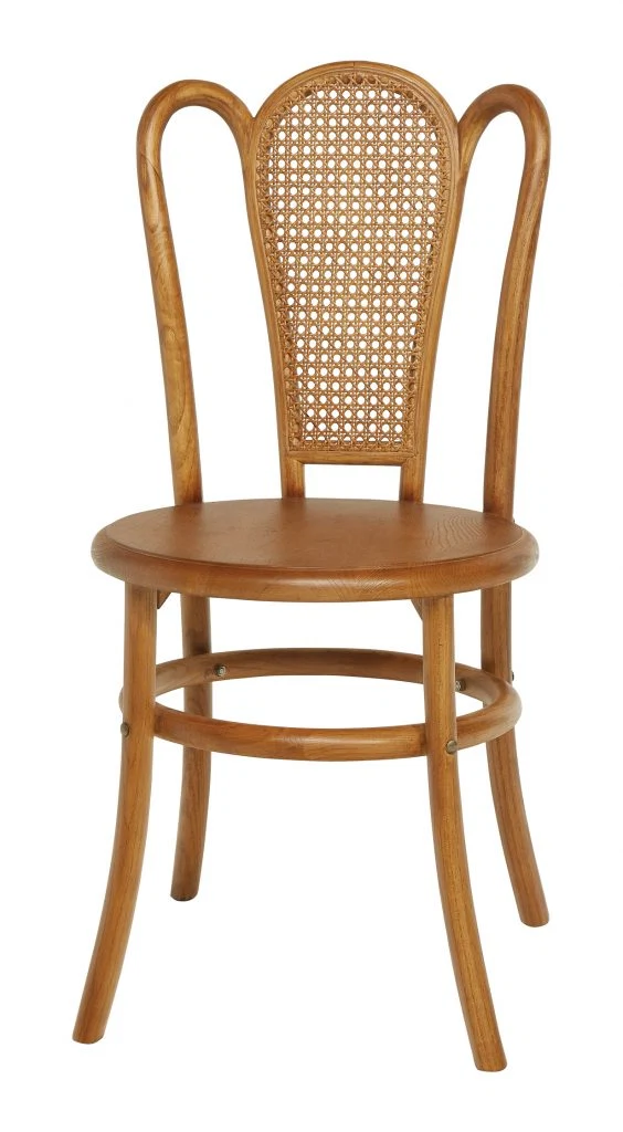 Look for furniture with details that set it apart, like the rattan insert on this wood bistro dining chair, €79.99.