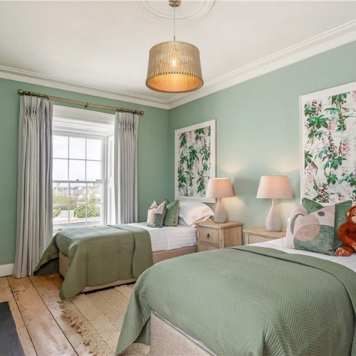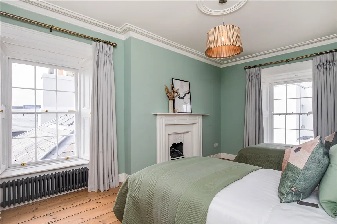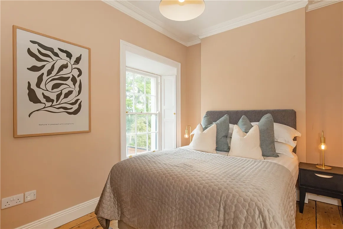 The other bedrooms overlook the front of the house, with sash windows, working shutters and restored timber flooring.