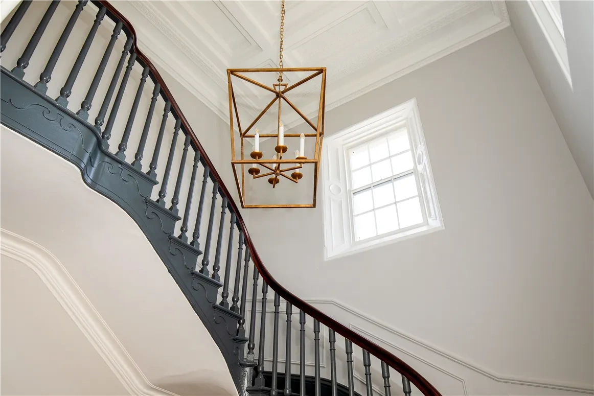 Cornicing, coving, working shutters and timber work – all original features of the home – are still intact though the property has been extensively modernised over the years. Inside, the focal point is undoubtedly the sweeping staircase off the main entrance hall, leading to the first-floor bedrooms. Windows frame the view at first-floor level with faithfully restored ceiling coving and plasterwork adding to the grandeur.