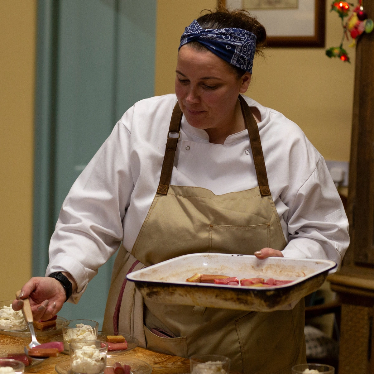 Hazel: I always try to do something a bit out of the ordinary, that people wouldn’t have had before. For a nice Easter feast, I’d make twice baked cauliflower cheese souffles, because I grow cauliflower in my veg garden. Then maybe a leg of our own home reared hogget. We leave our lambs mature to over a year because they have more flavour at that stage. I’d serve it with chard gratin from the garden and to follow a nice roasted rhubarb panna cotta. It gives me a thrill to go out to the garden to pick the ingredients for a meal, there is a pride and a satisfaction you get when you know you have grown it and it ends up in this lovely meal that friends and family can enjoy. With The Dining Club and our events we try to do this as much as possible, we want it to be as much a Whitestown experience as possible and that includes the home grown ingredients.