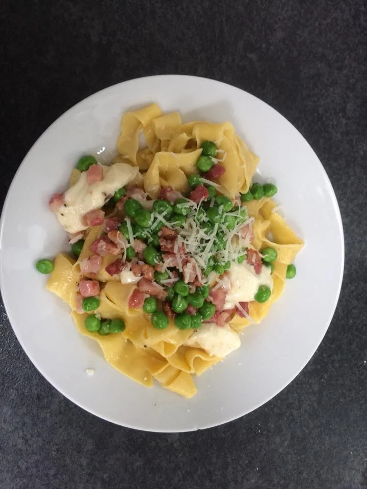 Pasta sauces are a whole other topic, so I decided to keep it simple and opted for garden peas, bacon lardons and torn mozzarella, all fried off in a pan before being thrown in with the cooked pasta (which takes roughly three minutes depending on thickness, but you can judge fairly easily) and smothering it in parmesan.
