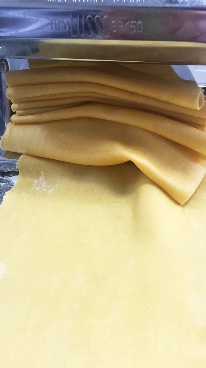 3. Set your pasta machine to its lowest setting (or the thickest) to roll your dough and work your way up through each setting, passing the dough through a couple of times on each one.