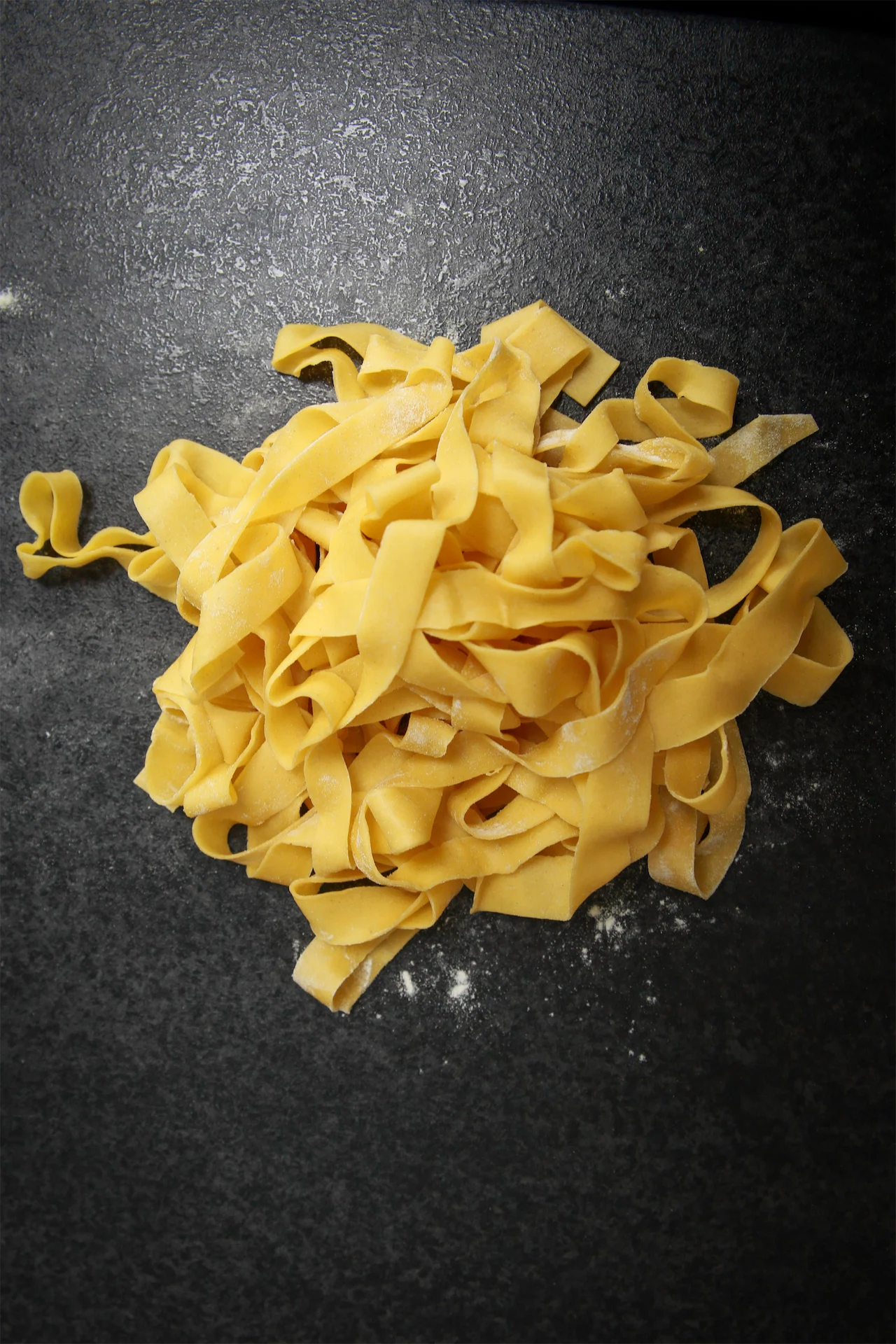 A serving for four people requires 200g 00 flour – a special type of flour that can be found in any good supermarket – and 10 egg yolks. The process is suspiciously easy.