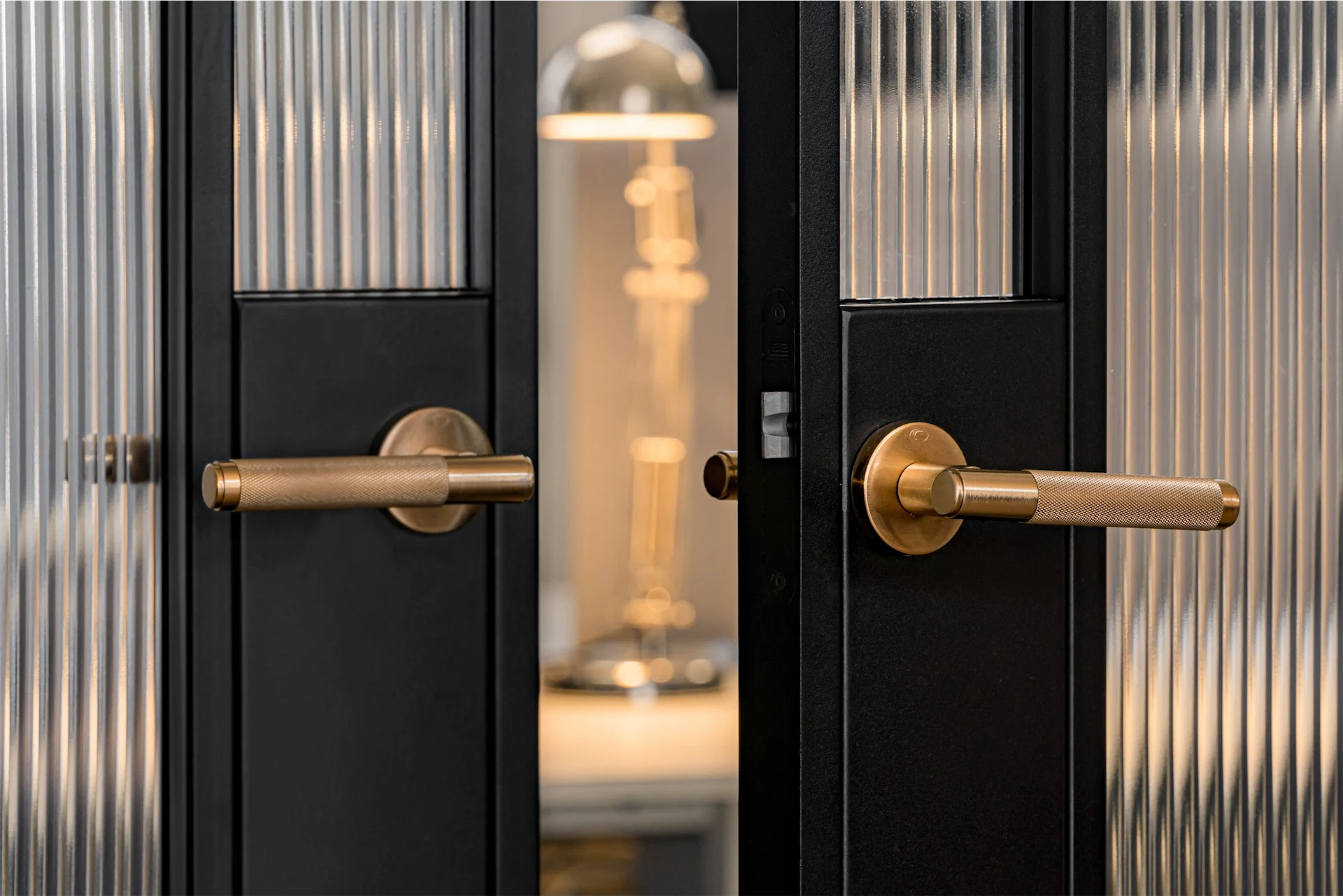 “A traditional, classic design with a modern twist was achieved with our bespoke steel doors. The fluted glass, also known as reeded or ribbed glass, a recent interior trend that does not seem to be going anywhere, creates privacy and adds texture without blocking light.