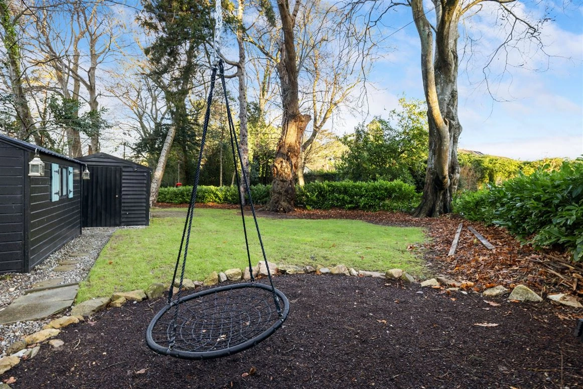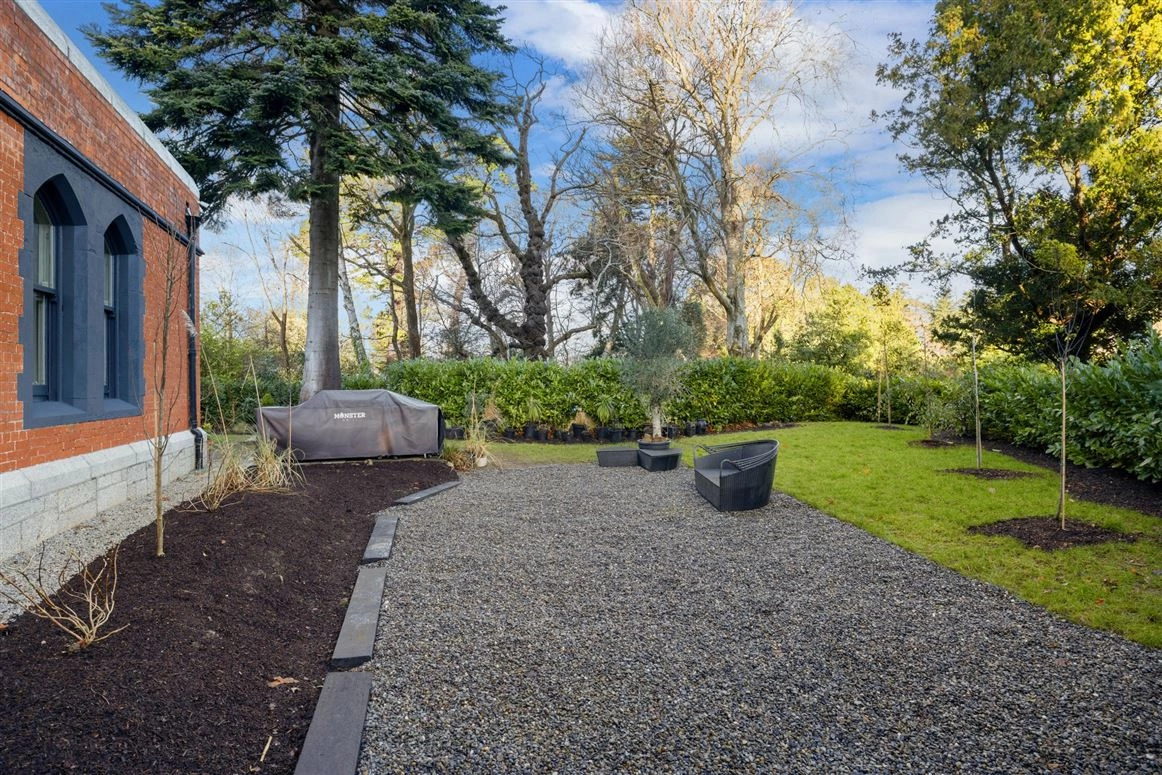 Externally, the grounds are just as impressive as the interior and comprise three principal zones. As previously mentioned, there is a dedicated private parking bay, to the right of which is a woodland glade with a chalet-style hobby shed with light, a garden/tool shed, and a fuel store. Between the parking bay and hall door entrance, a landscaped terrace with box-hedging planters has been designed to create an outdoor space for entertaining, while to the gable end of the residence, there is a private garden.
