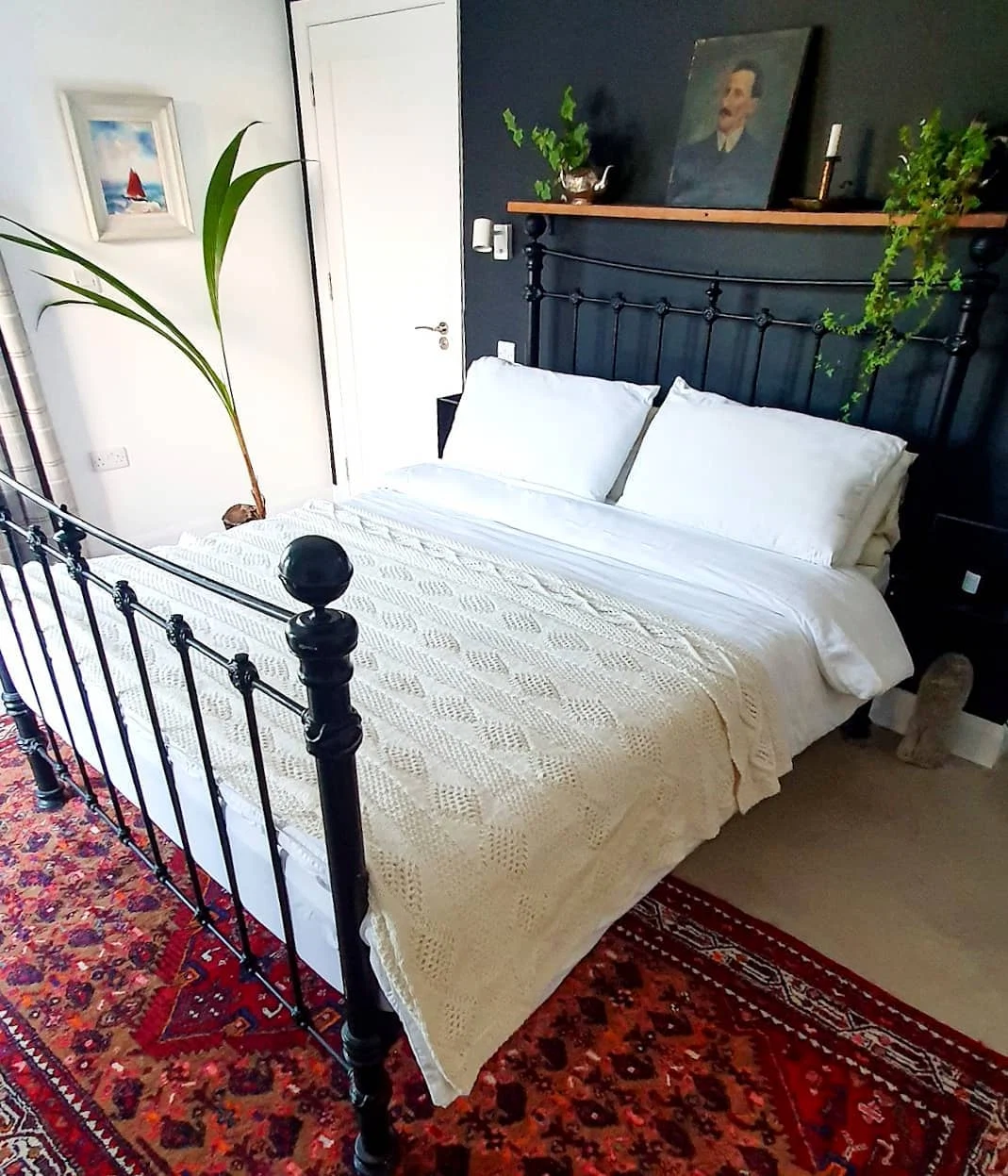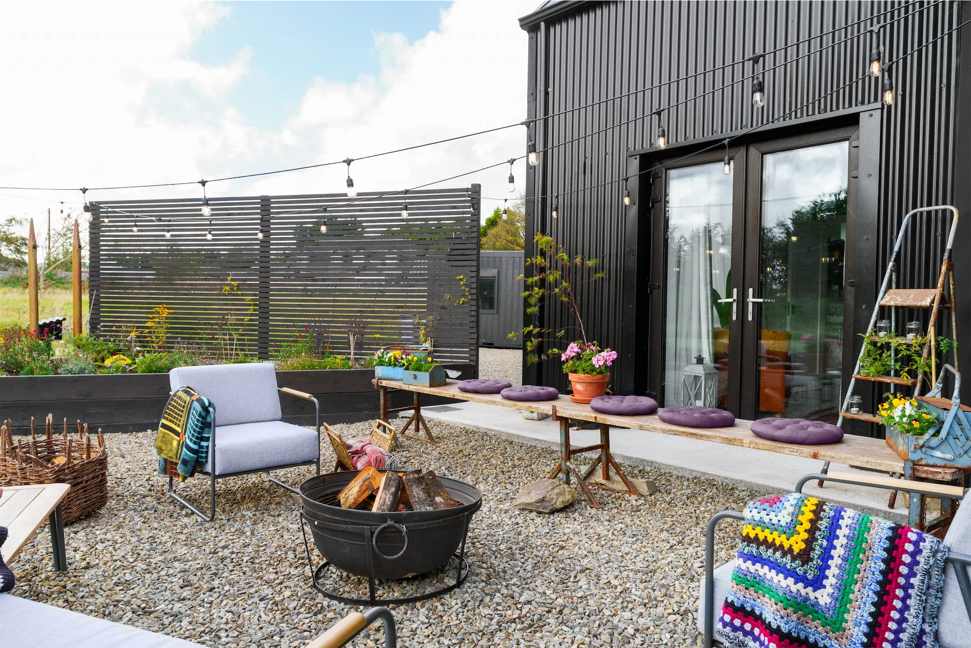 David, an interior designer and project manager, said he wanted to build a black house, and he did exactly that. As Hugh pointed out, it’s a dark, modern home in the middle of rural Cork so it shouldn’t work, and yet the corrugated steel cladding and gable design of the house means it looks like a hay barn, fitting in seamlessly with the surrounding fields.