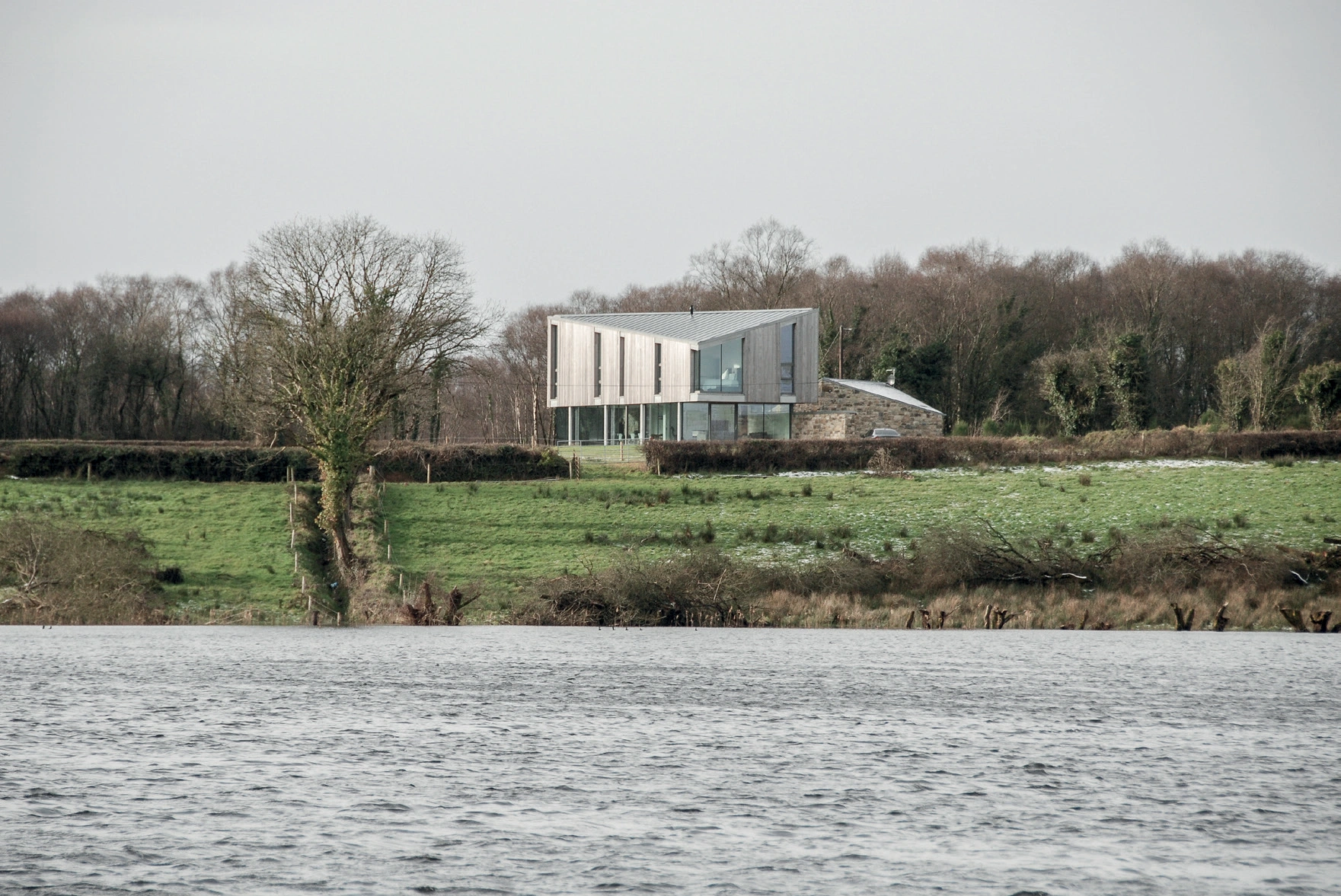 Picture a beautiful landscape, a wild field and woodlands, facing the calm waters of a midlands lake. It’s a challenge for any architect: to create a building that not only sits in the landscape, but augments it.