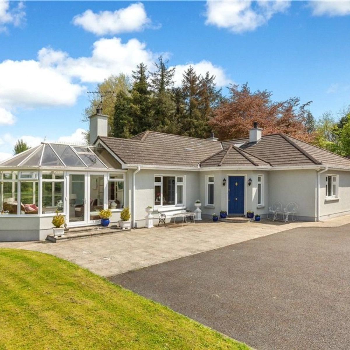 There are five vehicular and pedestrian access points on the property offering great connectivity with local transport routes. The property is also just 30 minutes from Dublin Airport. The front entrance welcomes you with separate access points for the main house and the cottage, with electric gates, ample parking, and a carport attached to the main residence.