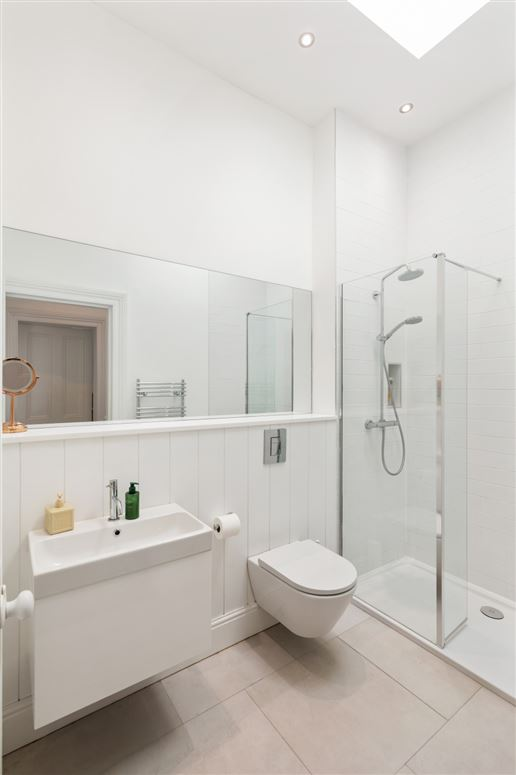 The hall level comprises a welcoming reception hallway, two gracious interconnecting reception rooms and guest w.c. with a study / bedroom five on the return. The upper floor including two returns comprises four double bedrooms, two of which are ensuite, a family shower room and cleverly located utility / laundry room. The garden level accommodation connects effortlessly with both the front and rear gardens. It features a comfortable living room and contemporary kitchen fitted with bespoke modern units by The Cabinet Company.