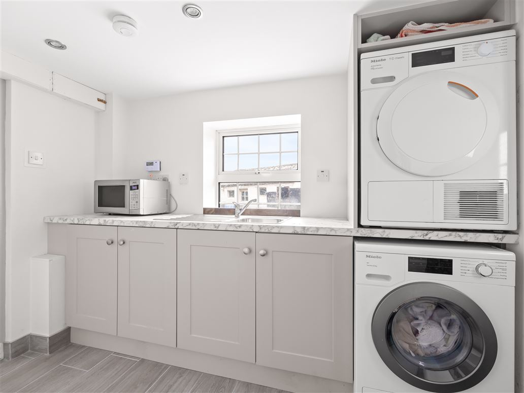 As you step through the front door, you are greeted by a bright, spacious entrance hallway filled with natural light. To the right, the heart of the home awaits. A stylish, modern kitchen designed for both functionality and comfort. This space features abundant high-quality cabinetry, extensive countertop surfaces, and a contemporary breakfast bar for casual dining or morning coffee. Off the kitchen, there is a large utility room with plenty of additional storage and a guest WC, ideal for busy family life.