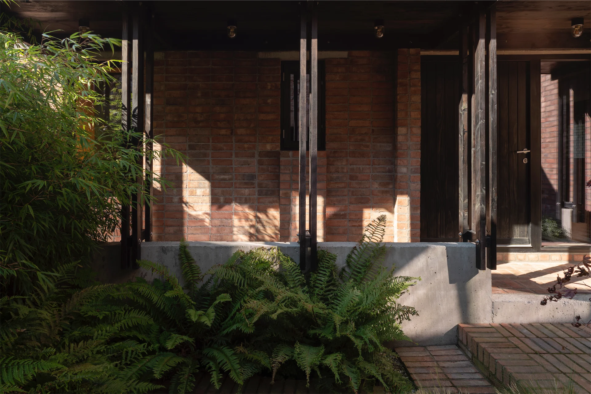 Although this courtyard is modest in footprint, it’s full of life with its patterned tiles and lush planting. It can be appreciated both when sitting outside and inside and turns what could have been an uninviting space into one that draws you in.