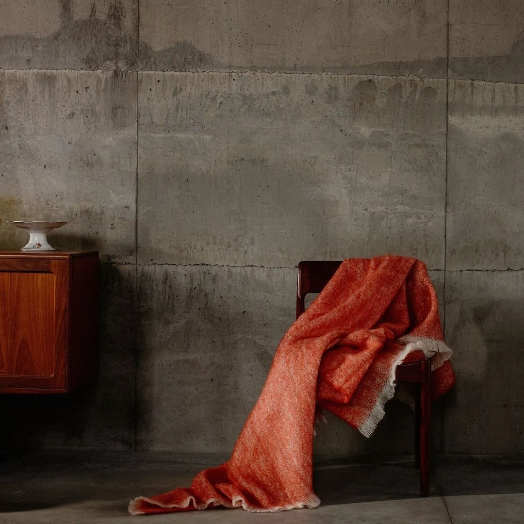 Add a chunky wool throw or a vintage Kantha Quilt over the back of your sofa, armchair or seating bench, to give not only real warmth, but the idea of warmth too. Foxford and Cushendale are beautiful Irish woollen mills.