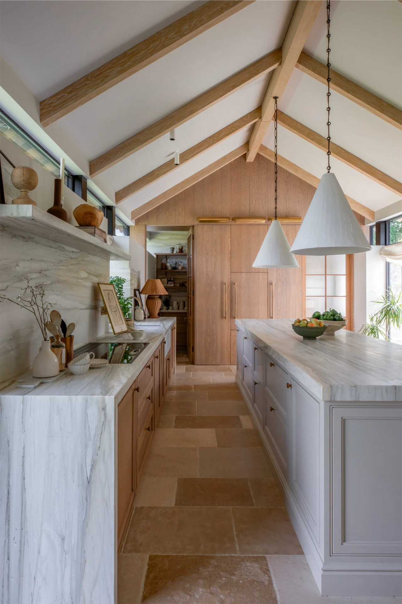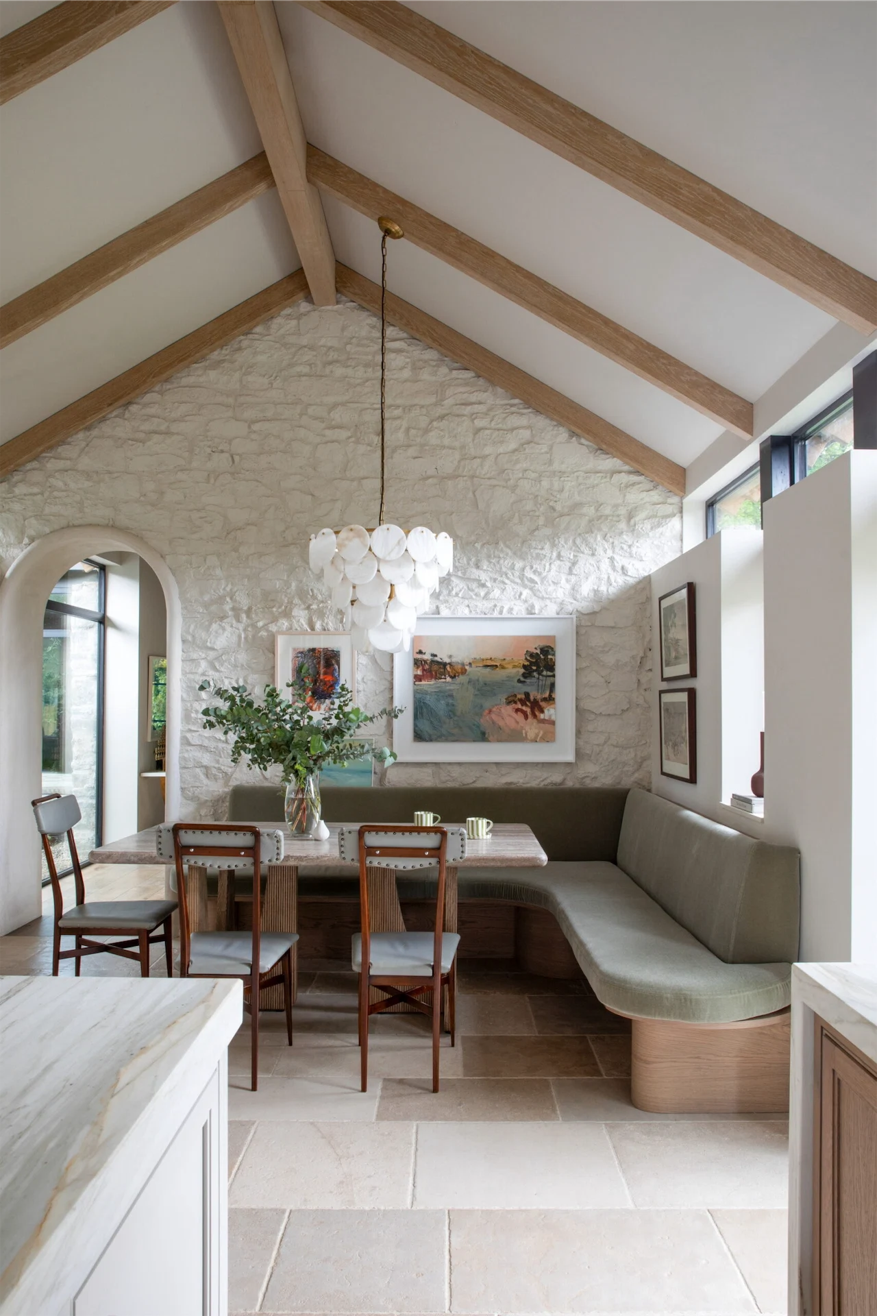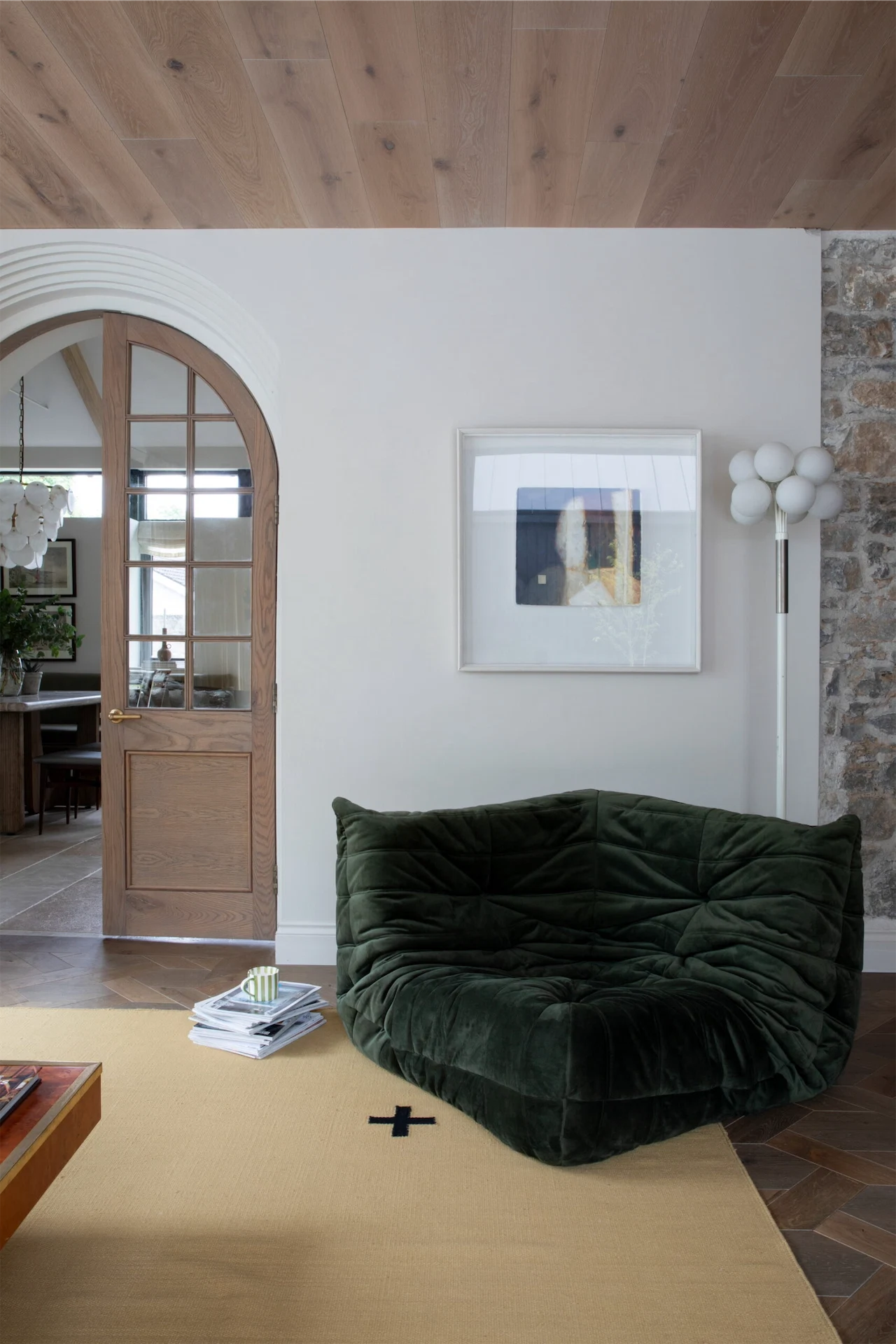 “I wanted the kitchen to feel spacious,” Geri explains, “as that’s where we spend the majority of our time. And coming from a cottage that was darker, we adore the natural light that has been afforded by raising the roof of the outbuildings to take light at all times of the day. It’s so relaxing here in the evenings when we come home from a busy day at work.”