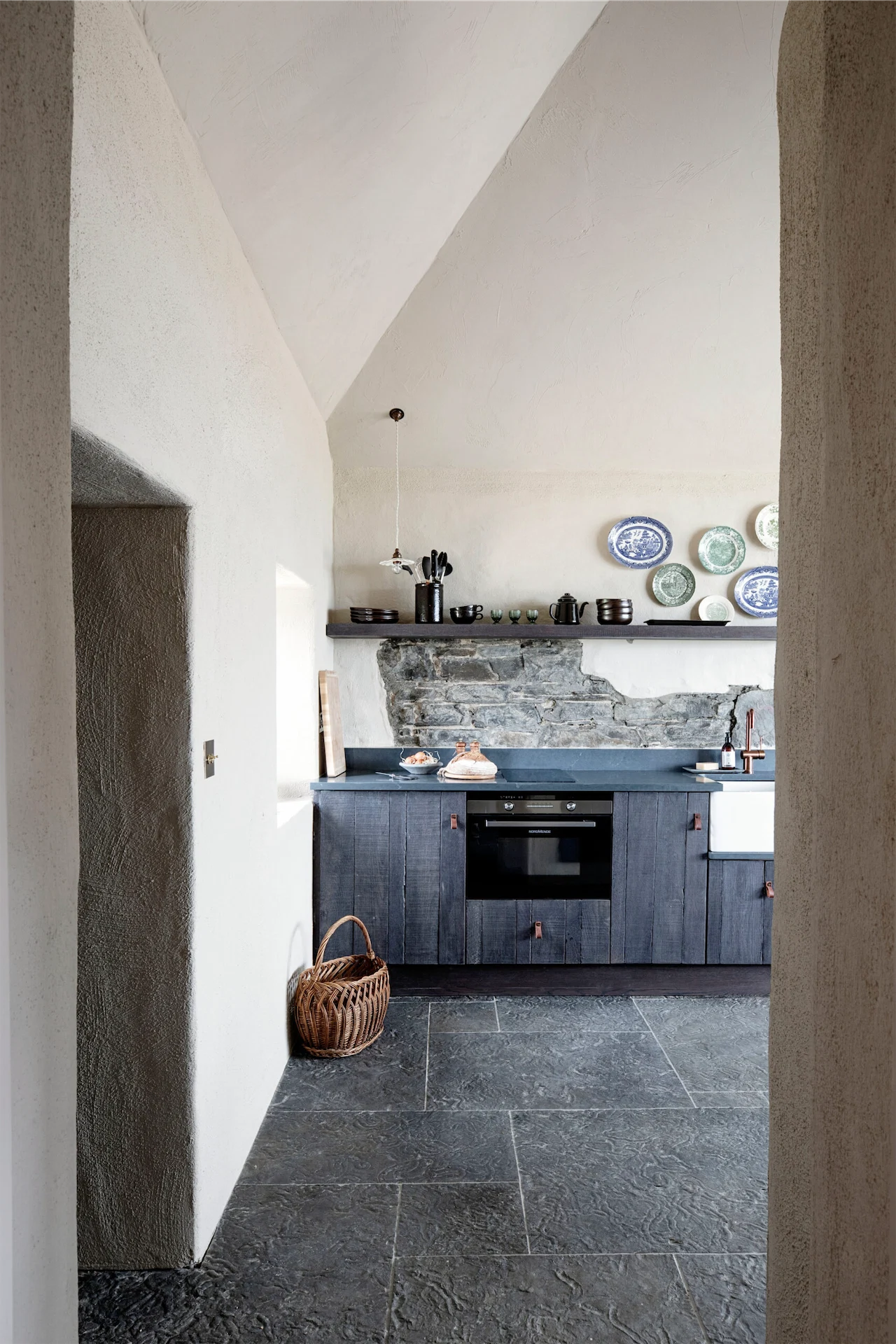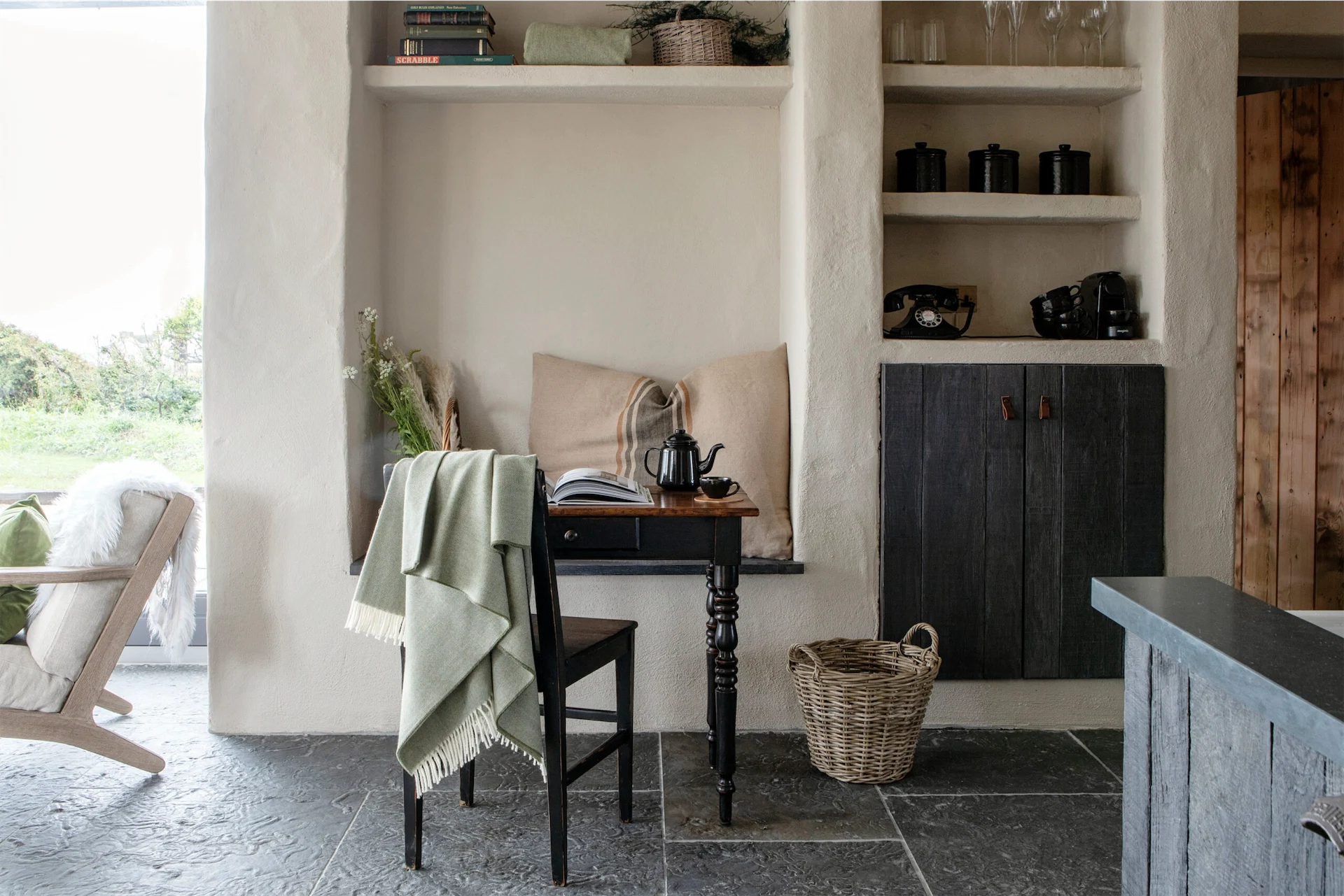 Animals roam freely around the farm, while the walled gardens have supplied the nearby Armada Hotel with fresh daily produce for decades. In recent years, the farm’s Gate Lodge building was carefully restored and transformed into a peaceful retreat. A textural haven in muted colours, it’s truly the loveliest self-catering property we’ve ever stayed in.