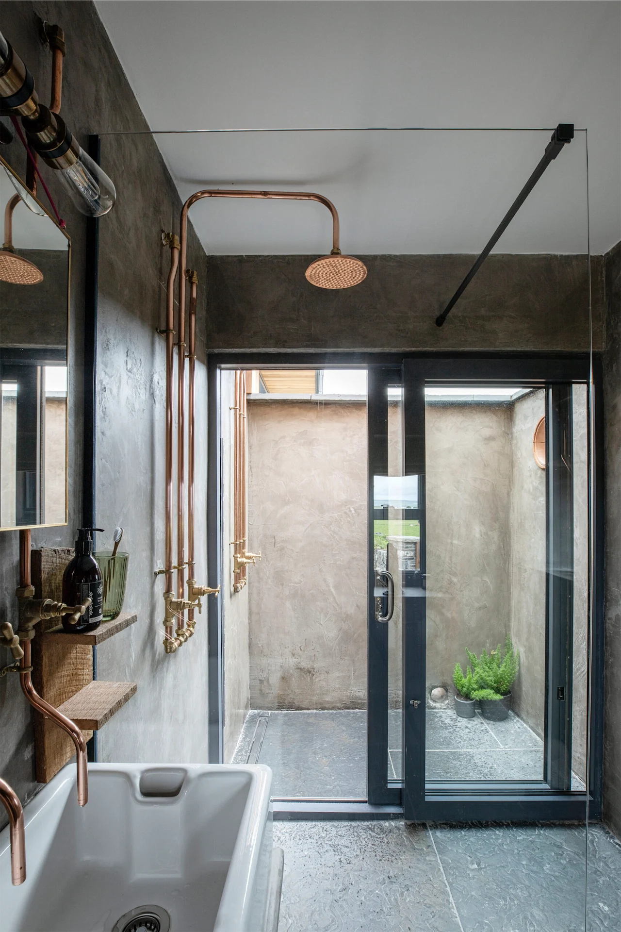The Gate Lodge is small but never feels it. The kitchen living space is open-plan, with a separate double bedroom and the coolest bathroom, with both an indoor and outdoor shower. Warm concrete walls and exposed copper pipes add texture, while fluffy white towels and Handmade Soap Company products provide a luxurious touch.