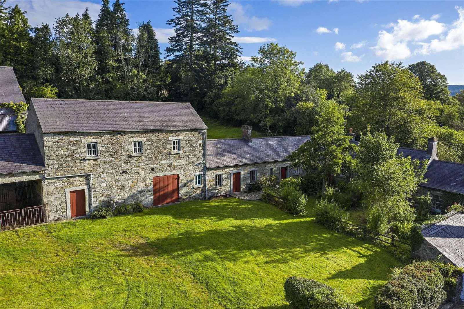 The rest of the stone buildings include a two-storey granary, a coach house, multiple stores, an old dairy, livestock stalls, a ruin and a magnificent, tall stone barn that are all ripe for potential conversion. All set within a gloriously green 15 acres.