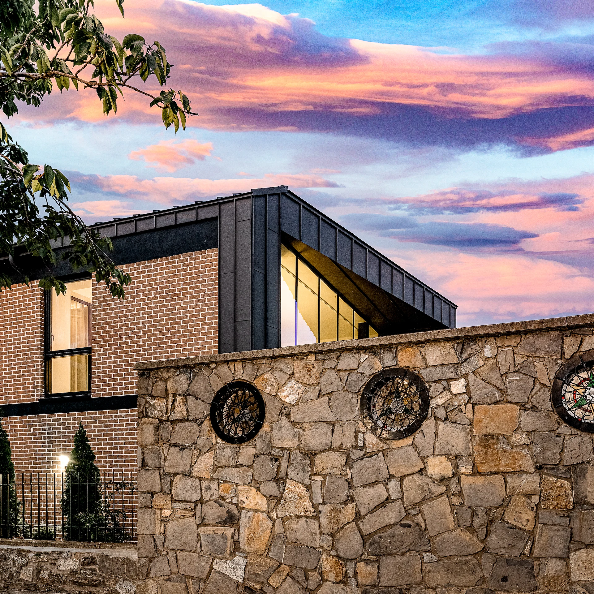 Light has been an important consideration throughout the project. The tall kitchen and dining space is flooded with light thanks to a curtain wall window, externally clad in charcoal zinc oxide to contrast with the traditional red brick of the building exterior.