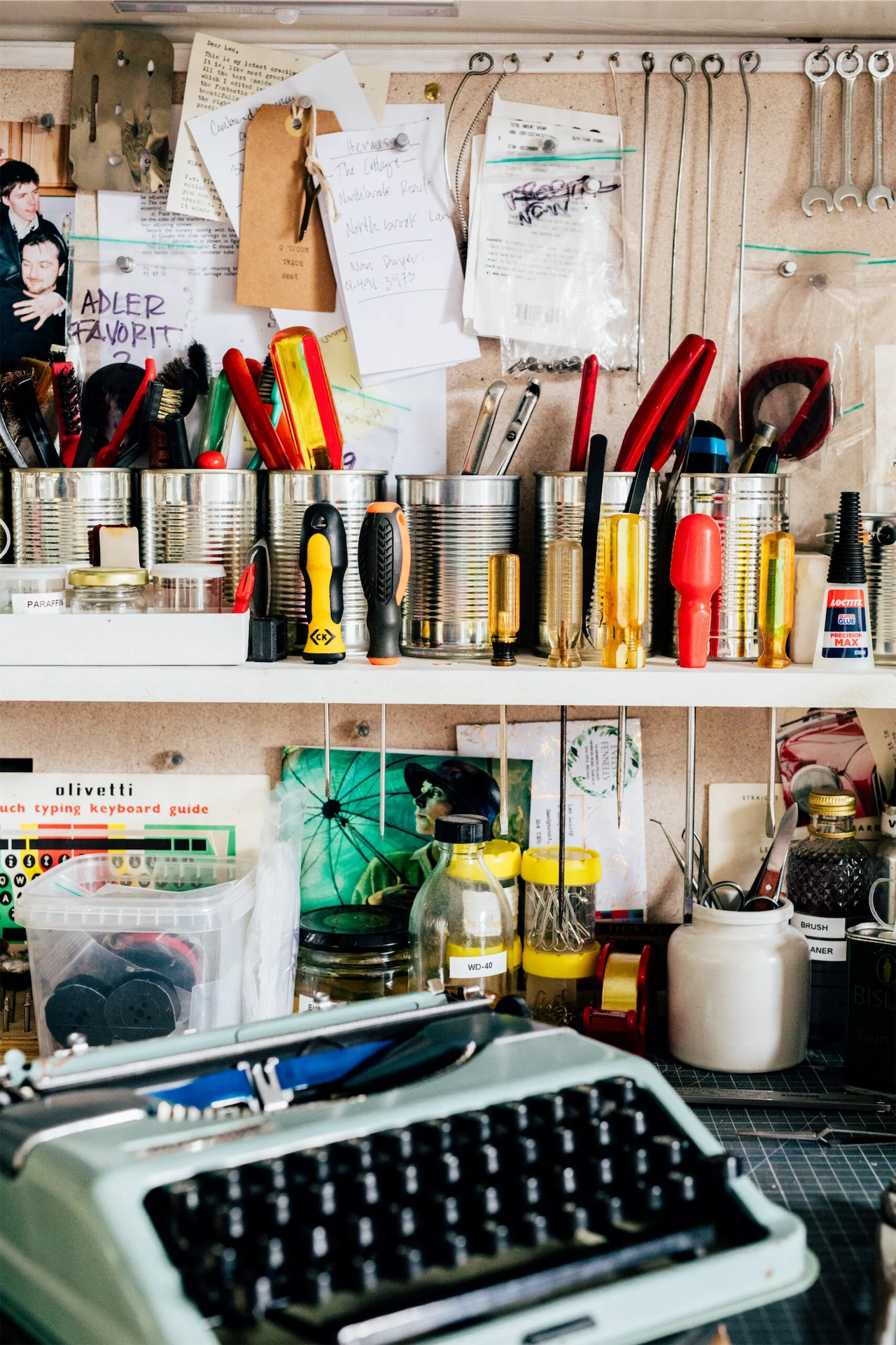 Visiting Leo in his attic-space workshop, I feel like a kid, dying to reach out and fiddle with all his beautifully organised pieces of kit: homemade shelves with holes carved to hold specific tools, a row of stripped-clean aluminium tomato tins holding all manner of items. Watching him bent over a machine, in denim dungarees, flannel shirt and flat cap, I’m reminded of one of my favourite scenes in Toy Story 2 called “Fixing Woody” (look it up on YouTube). As only Pixar can, they capture the magic of the “before and after” process perfectly. It’s so satisfying to watch Woody being cleaned up with all these crafty little gadgets and gizmos – like a form of visual ASMR.