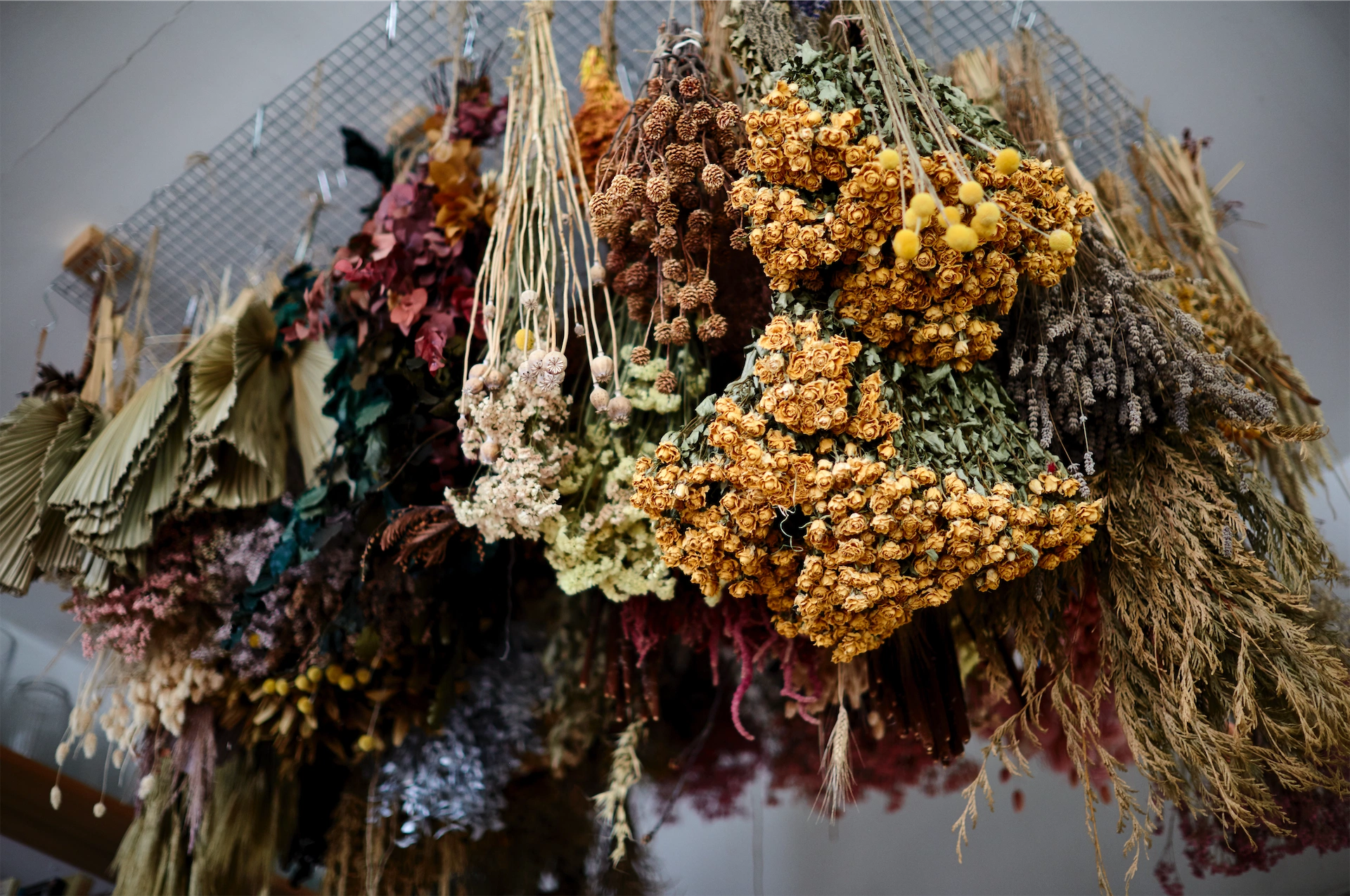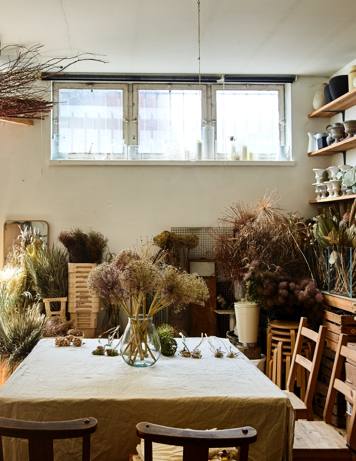 Fast-forward eight years and Worm is now a popular creative floral design studio based in a church hall in Stamford Hill, north east London. Their designs have adorned some of the city’s chicest stores, they have created a permanent installation for the Hilton Canopy in Aldgate, have published a successful book called Wreaths with Quadrille and, more recently, curated the blooms for Clodagh McKenna’s fairytale wedding to Harry Herbert at Highclere, better known as the location for Downton Abbey.