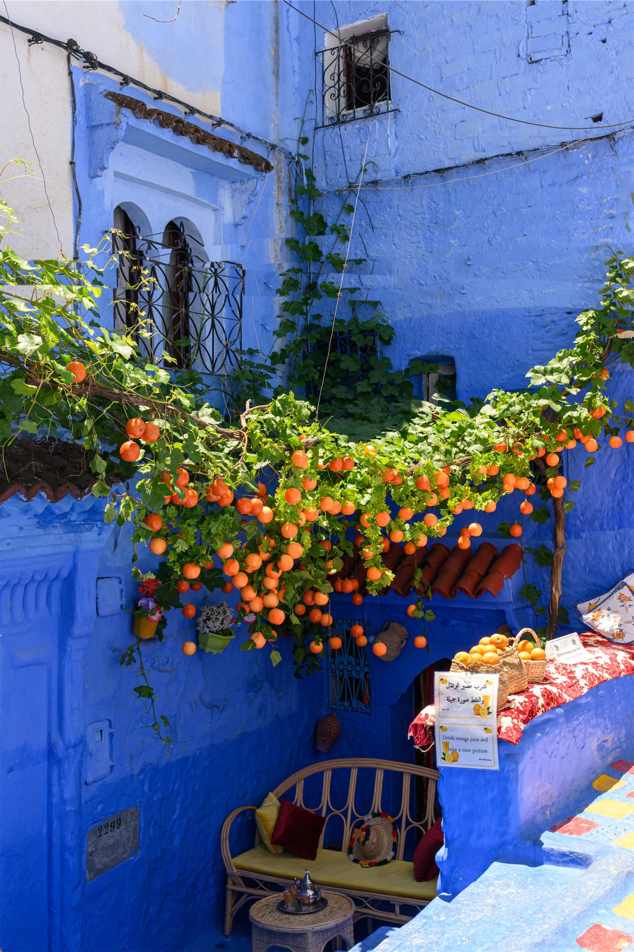warm hospitality, friendly smiles and a welcoming air. Perfect for a few days hiking, strolling the mesmerising blue streets, drinking in cafés and the best place to buy a beautiful handmade Moroccan rug without the stress of the busier souks in other cities. Staying inside the medina is charming even if the hotels are a bit dusty. Across a small valley overlooking the medina is Dar Jasmine, an elegant boutique hotel, which is quite lovely. Chefchaouen leaves a warmth in your soul that glows long after your visit.