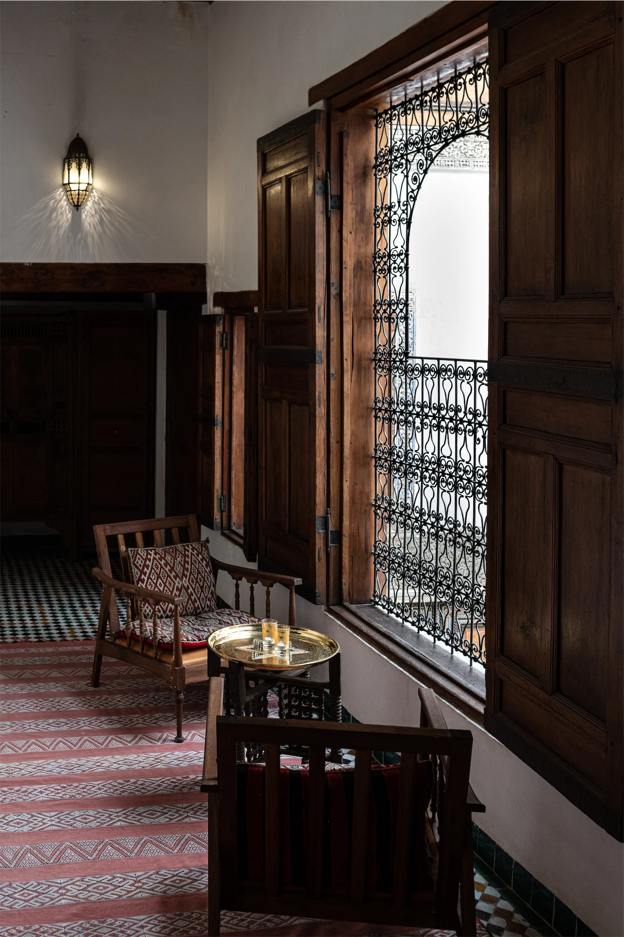 The ironwork on interior windows is exceptional as are the beautifully restored cedar wood panels with fastidious detailing throughout. Dar Seffarine is truly exceptional – guests from the seven unique rooms join a communal table for dinner. The food is cooked by Amina, manager Zouhir’s mother and was the best traditional food we ate in Morocco, which is high praise indeed.