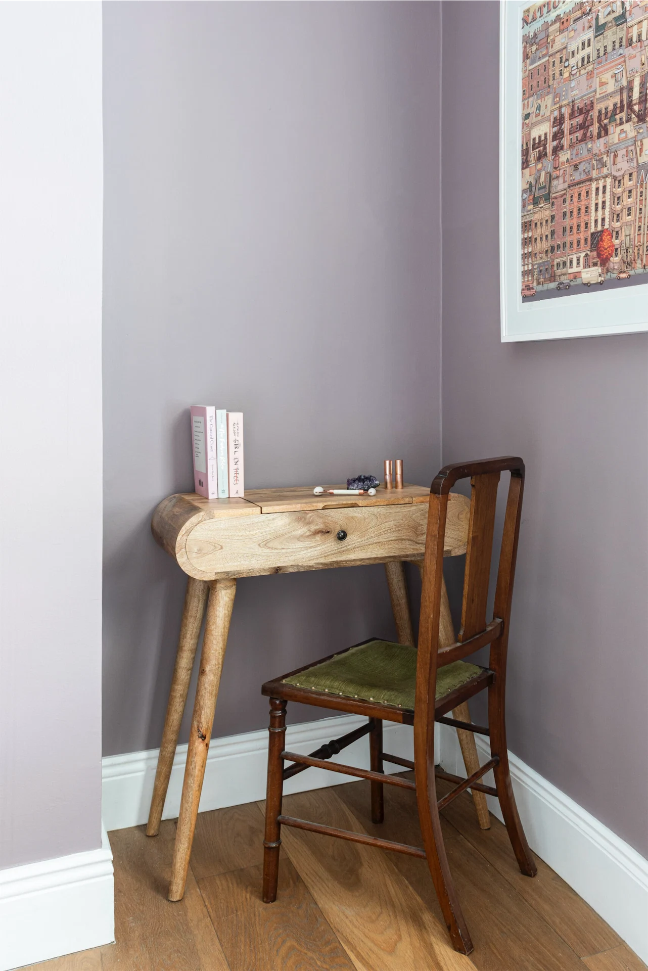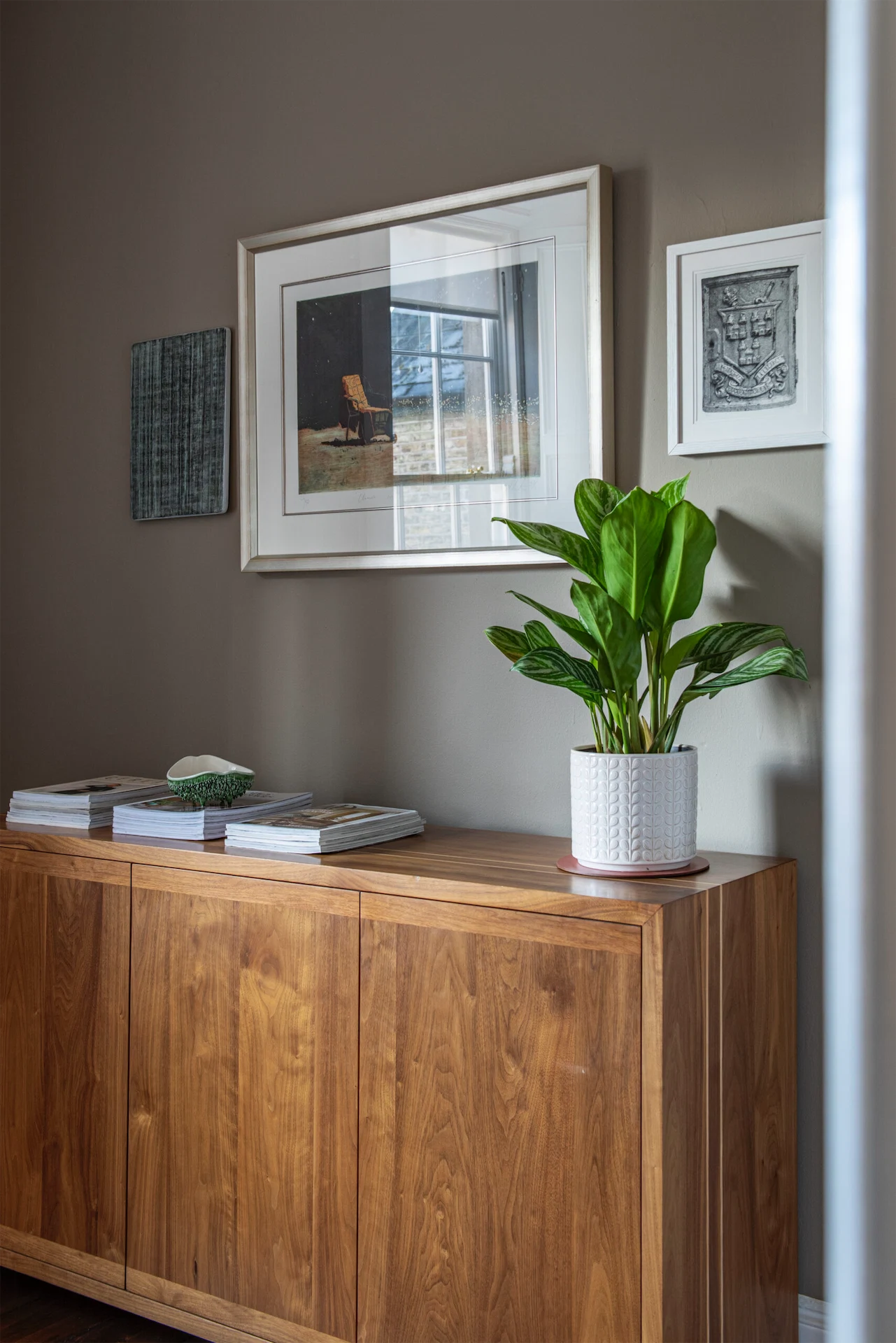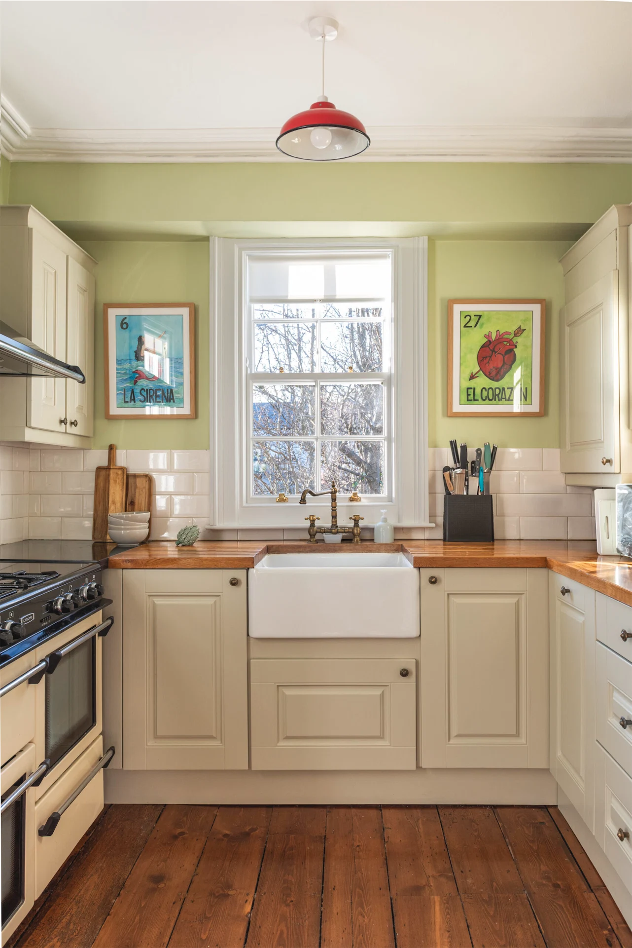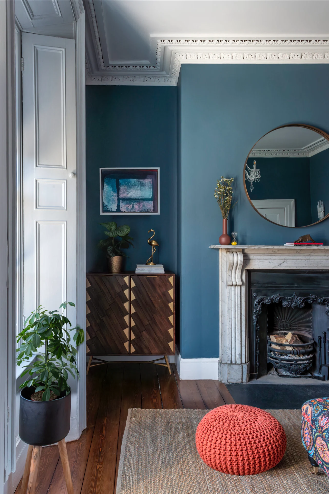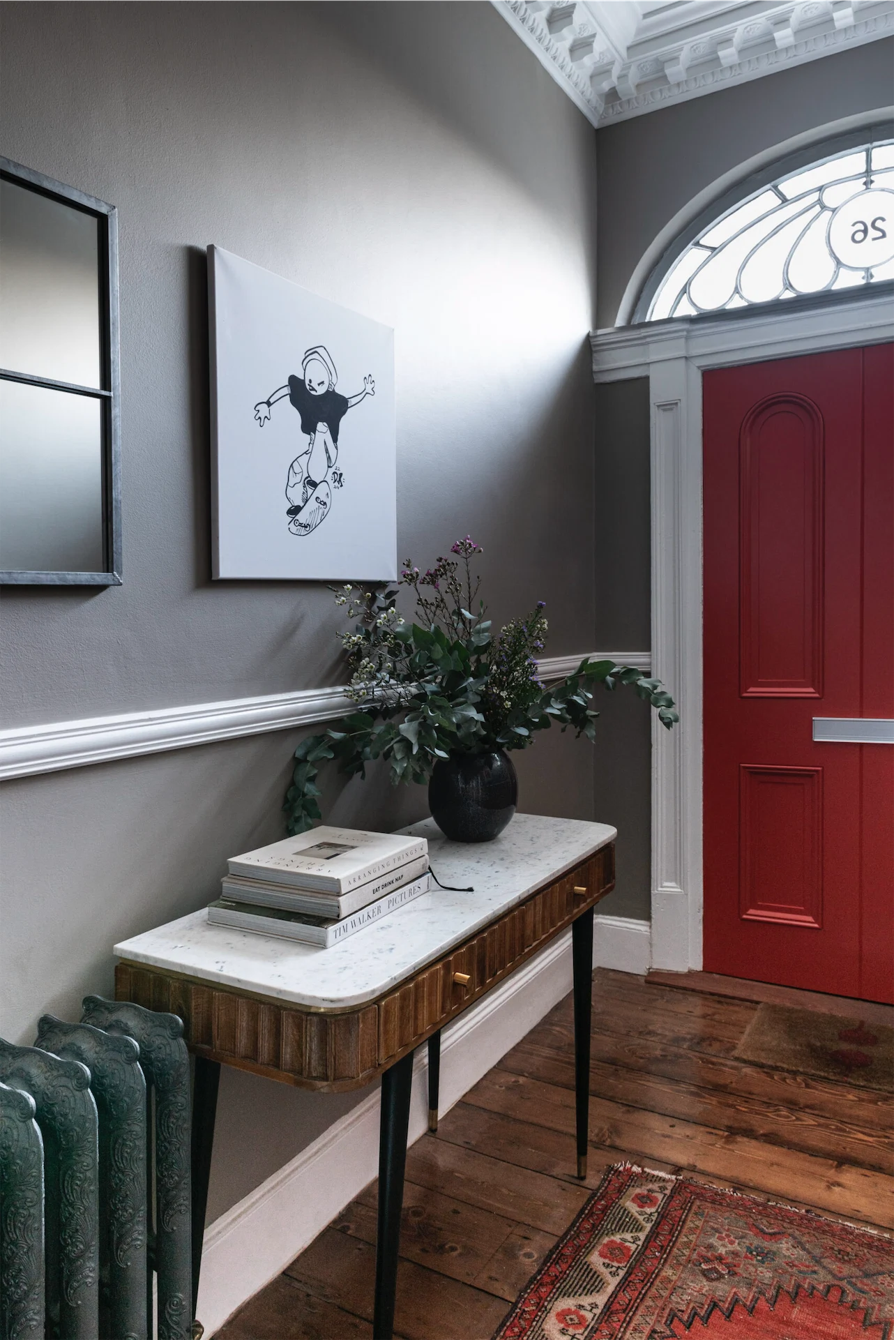 Caroline also took inspiration from the home’s exterior. “The first thing I noticed were the Victorian encaustic paving tiles outside, so the first colour I selected was a vibrant rowen berry red for the front door to complement these glorious creations.”
