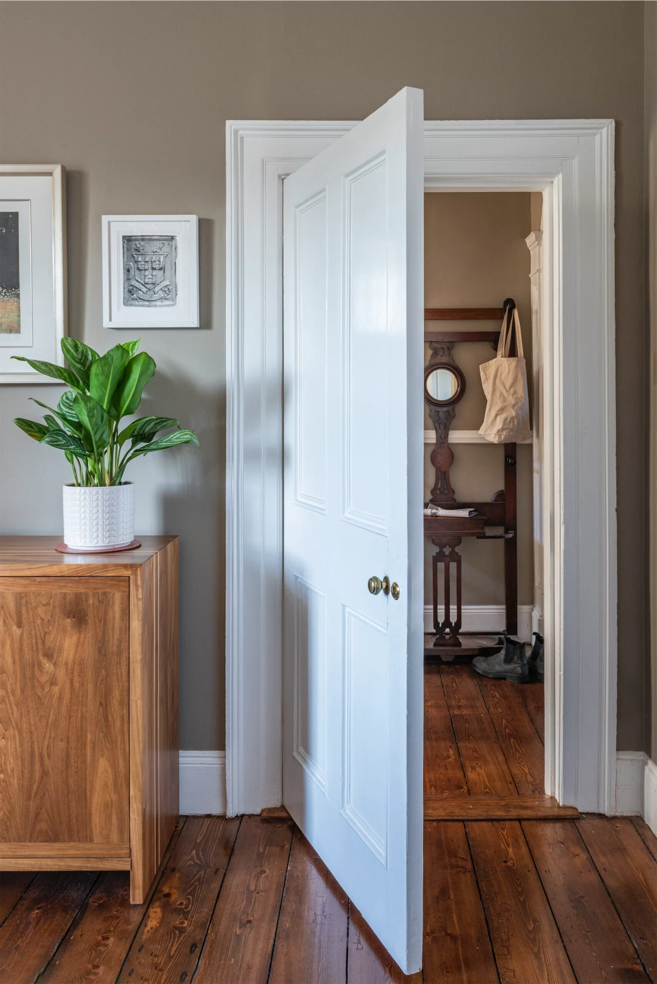 All the paint colours in the home are muted and soft in tone, specifically selected to work with how the light changes throughout the day. “They are from heritage palettes, in keeping with the period of the house, but feel contemporary due to contrast created by using a clean white for the wood and plasterwork.”