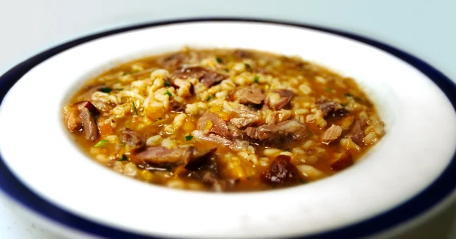 - Pop the chopped lamb back into the broth, add the parsley, season with salt and pepper and serve.