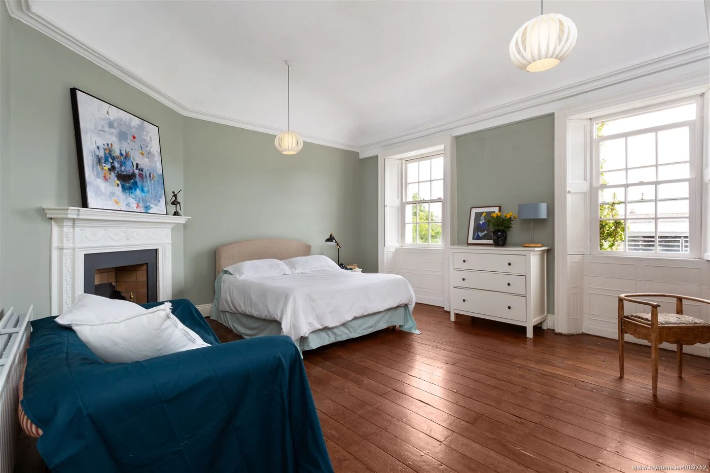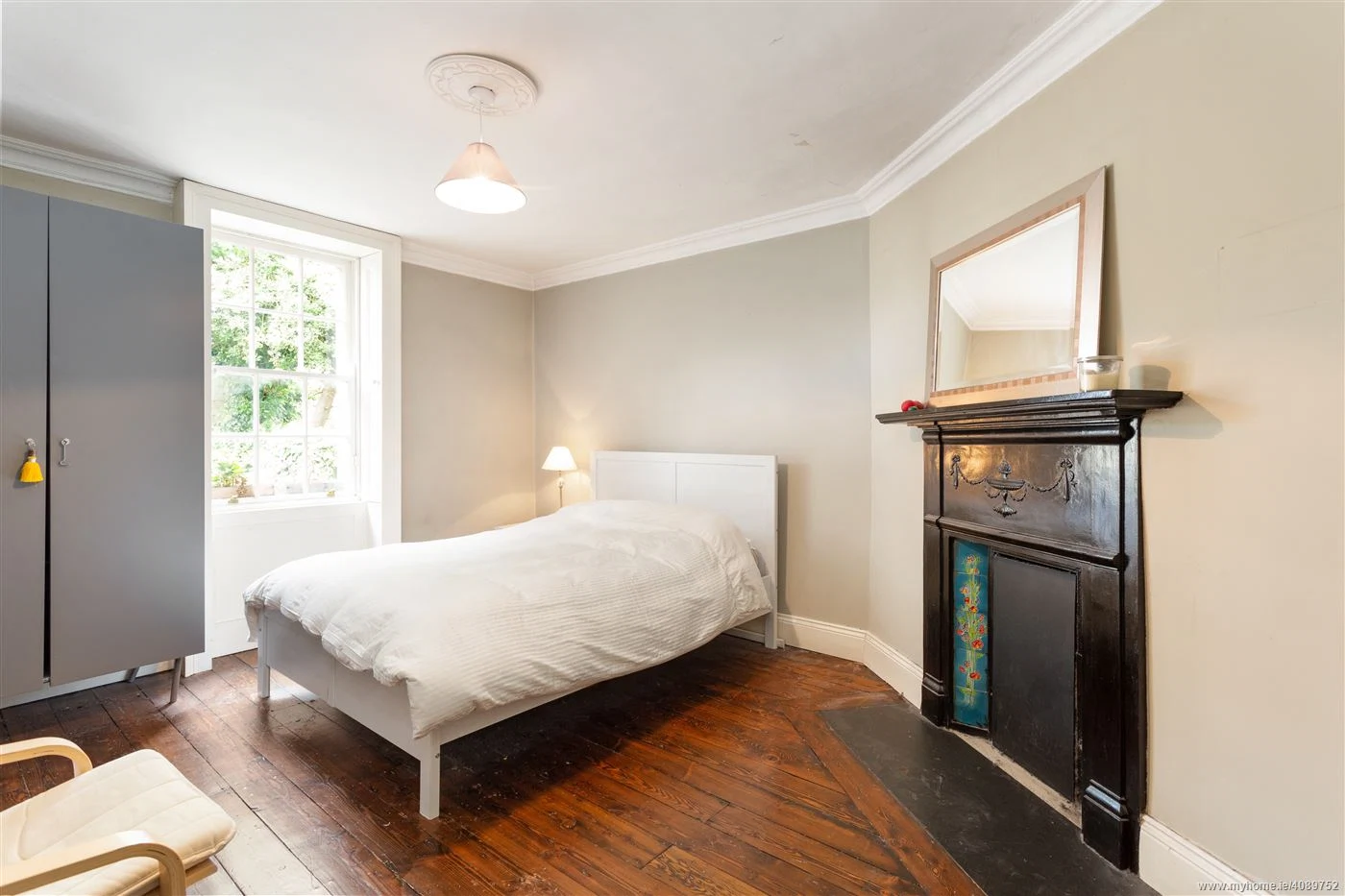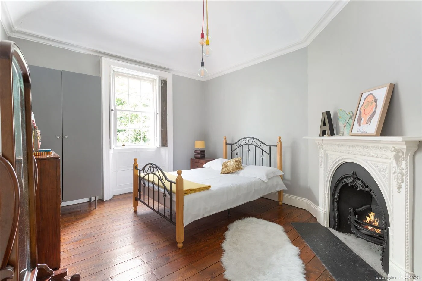 4 Old Mount Pleasant is for sale for €875,000 and there is a beautiful drawing room to the right, with a stunning fireplace and original floorboards. However, it’s an unusual shape, sliced off in one corner, presumably to fit in amongst the city terrace block.