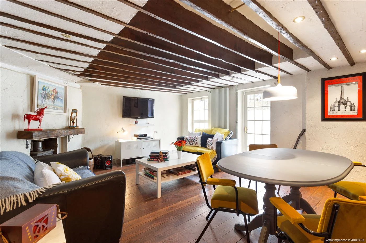 This terraced home on Old Mount Pleasant, Ranelagh, may seem like an urban idyll but exposed beams, stained glass and rough stone walls give it an earthy, rustic feel.