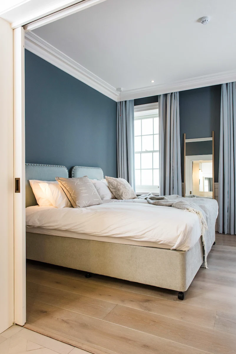 Now, awash with blues and greys and perfectly lit by wintery sunlight on the day we visit, it’s apparent Karen has an eye for interiors too. Living in London for twenty years, Karen really wanted to draw in and enhance the building’s already spectacular sea views. “I have an interest in interiors and period properties and felt there was very little in this part of the world that combined style, laid back luxury, sea views and character all in one place.”