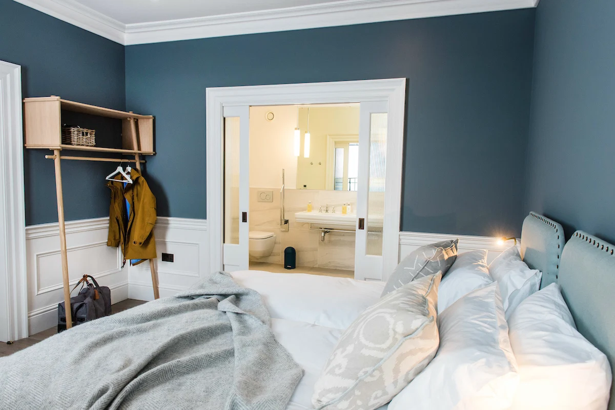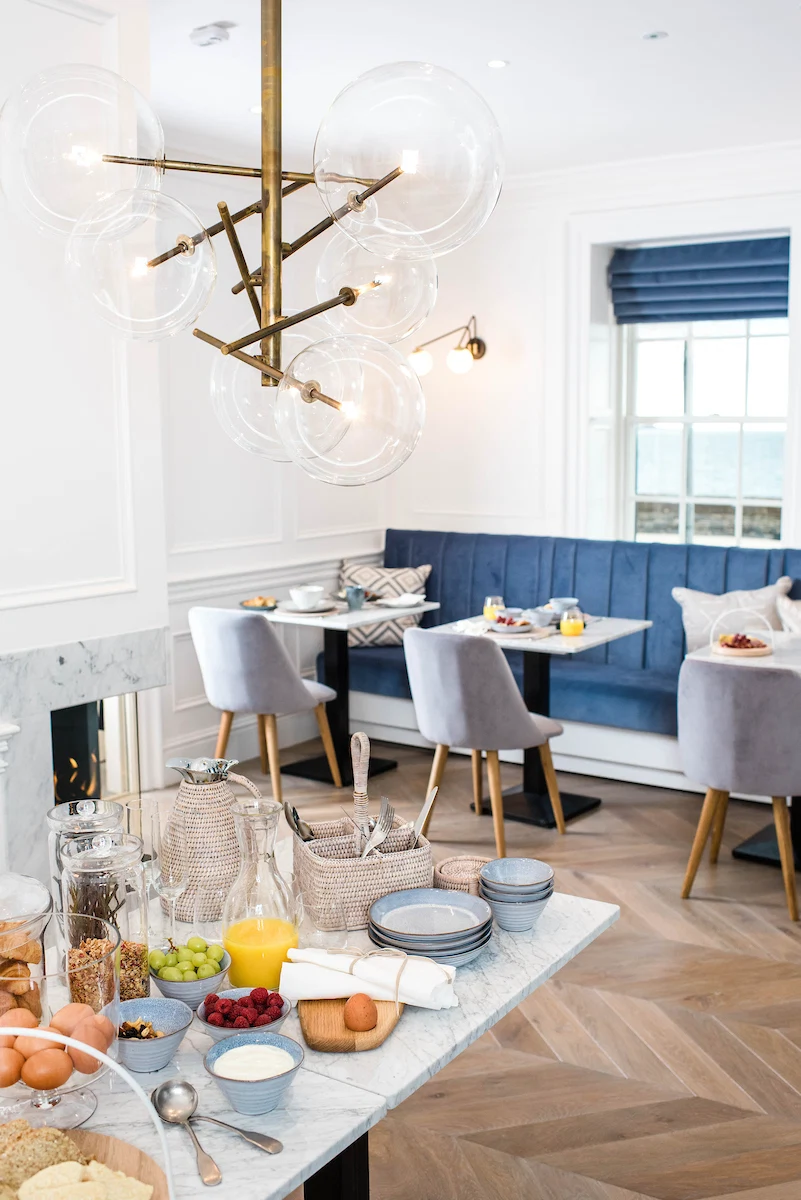 This is One Shore Street, the address and name of Karen and John Bolleboom’s luxurious boutique bed and breakfast. The Georgian shop front, once the entrance to Louden’s chemist in 1860, now makes for a bright and airy dining room, with the waves nearly licking the main entrance on the seaside. Upstairs, five individually designed bedrooms offer incredible sea views and beautiful finishes, from the snuggliest beds to the most considered interior design that complements the building’s architectural heritage while making it feel homely and modern.