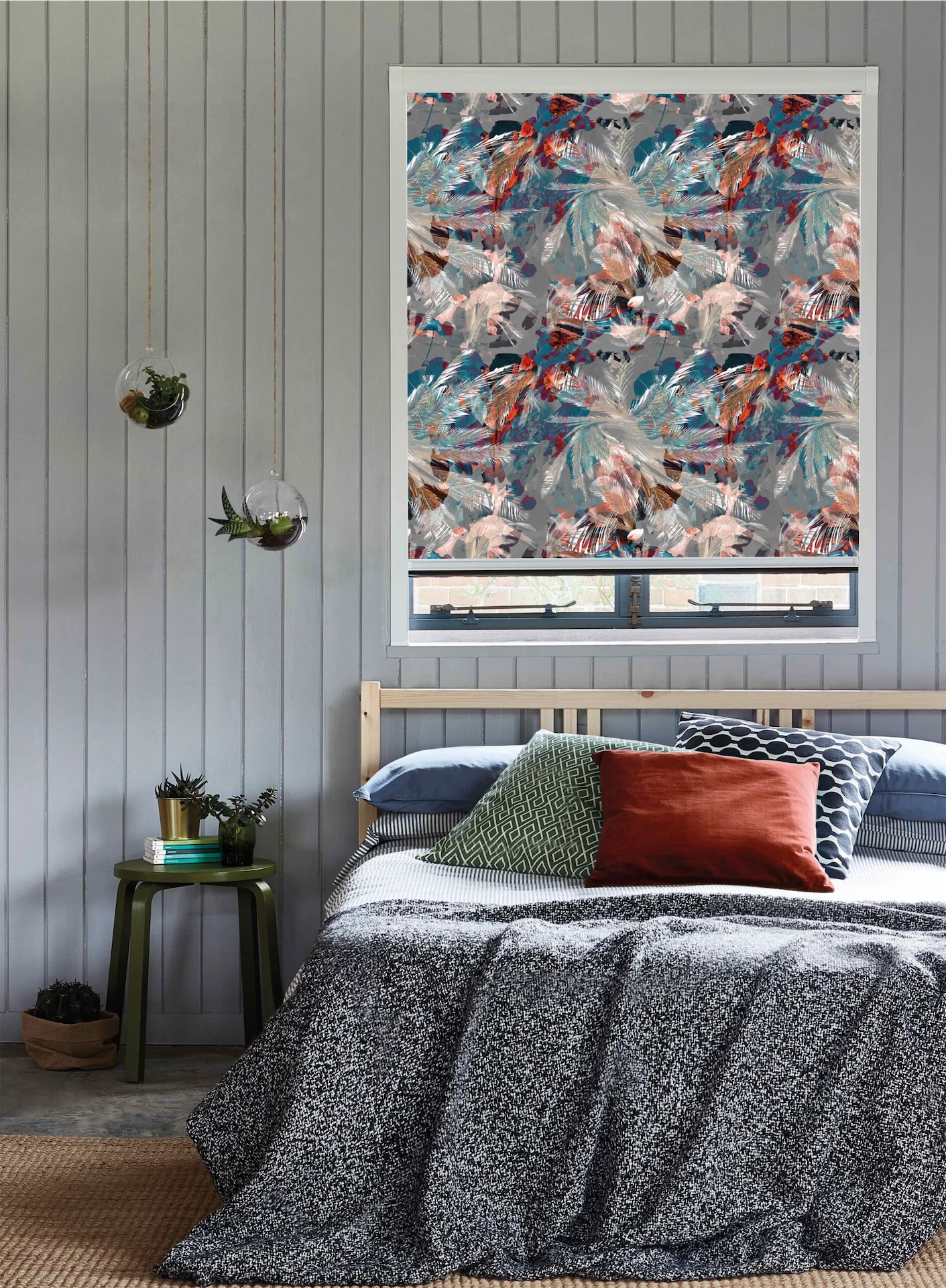 Roller blinds may not traditionally have been an exciting choice, but new designs are changing our minds with premium fabrics and gorgeous patterns. This design gives a moody touch in a bedroom, and as it’s not visible when the blind is open, it’s not too big a commitment. For something more neutral, there are various textures to choose from that add depth.