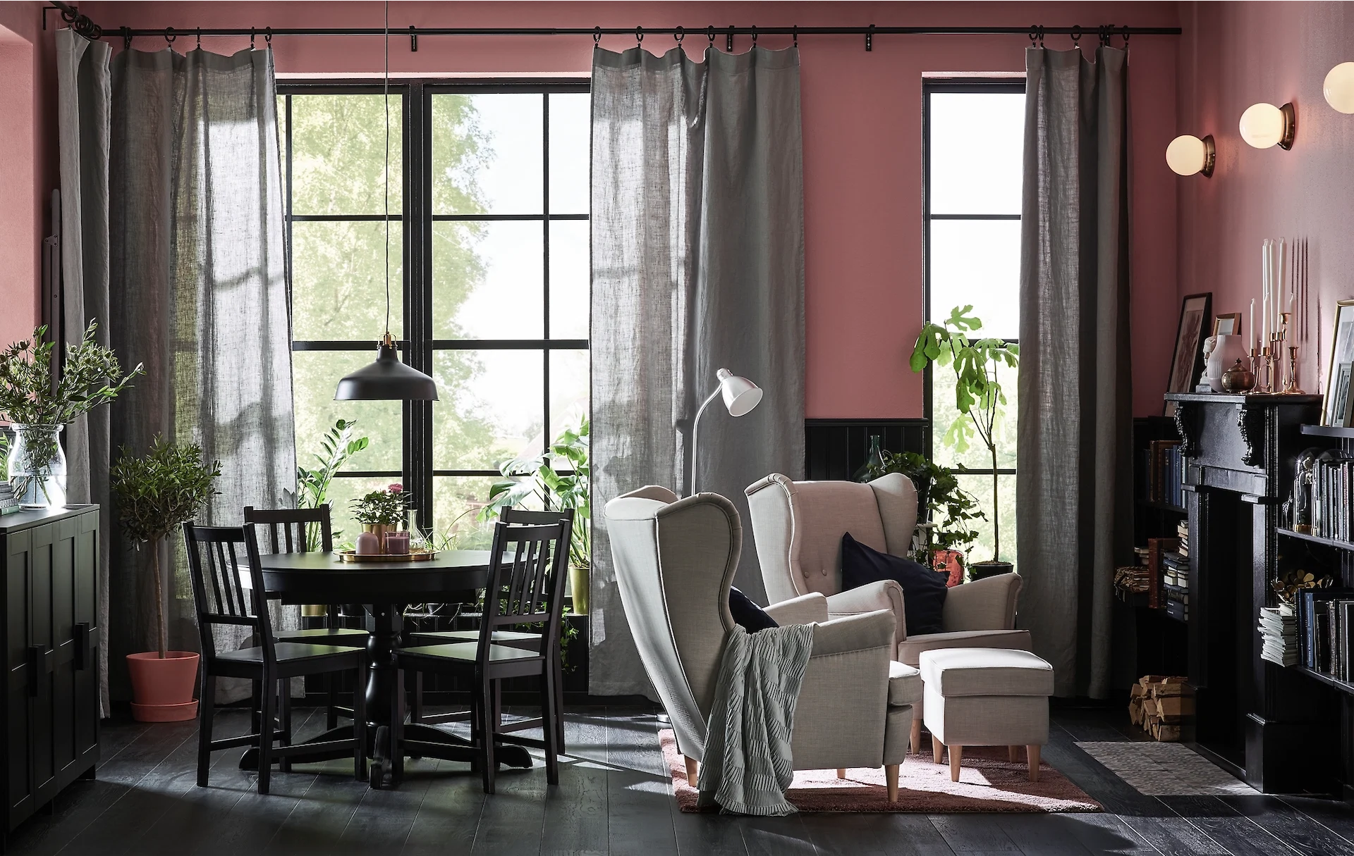Another choice you have to consider is the fabric. Curtains like these ones from Ikea provide warmth and texture to the room while keeping it bright in the daytime. For something more insulating, go for drapes in heavier fabrics, and options like fleece lining can also add an extra layer of protection against the cold.