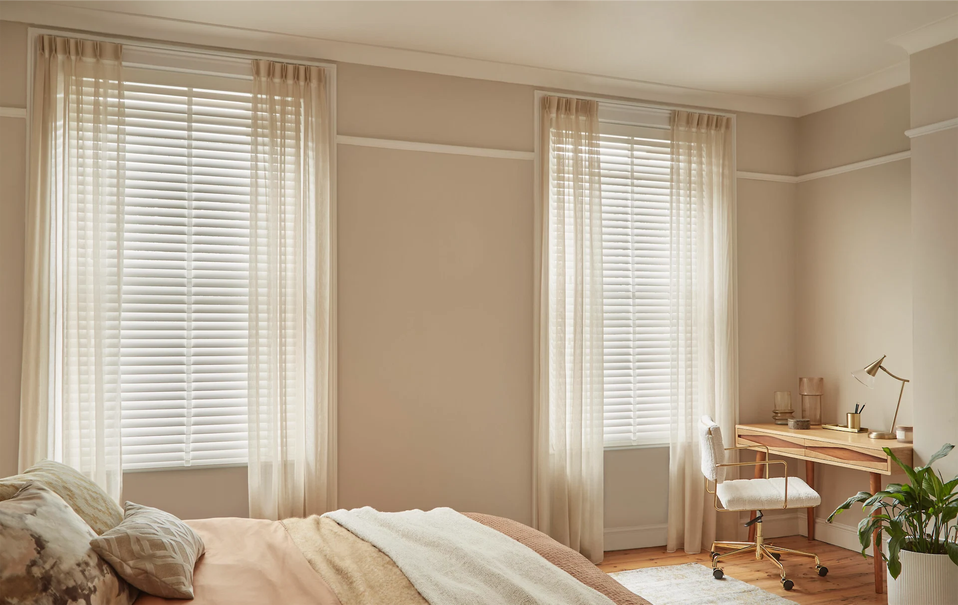 Internal shutters provide a classic look and are the most long-lasting form of window covering. Although the upfront cost will be more than curtains or blinds, good-quality ones will easily last for decades.